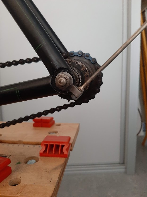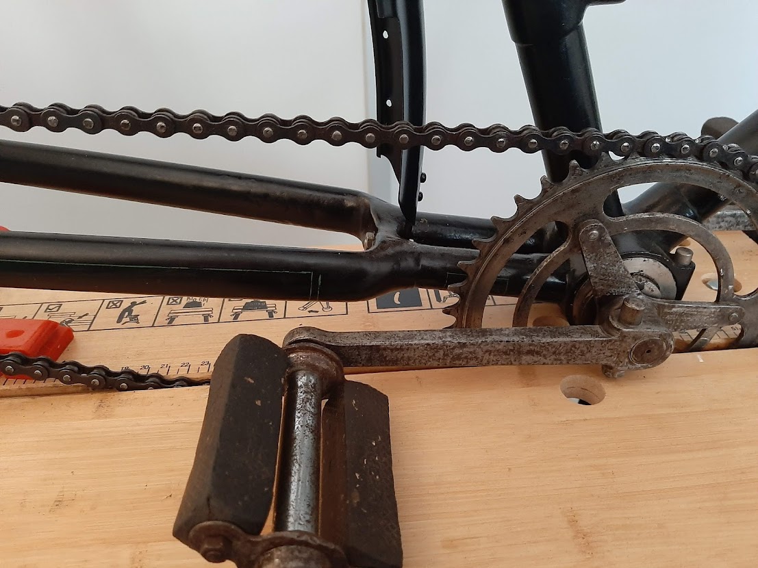 Wauw, het begint echt mooi te worden deze fiets! Grappig die excentrische trapassen. Ik dacht tot voor kort dat dat alleen op moderne fietsen voorkwam zoals de hoogwaardige vakantiefietsen met riemaandrijving.