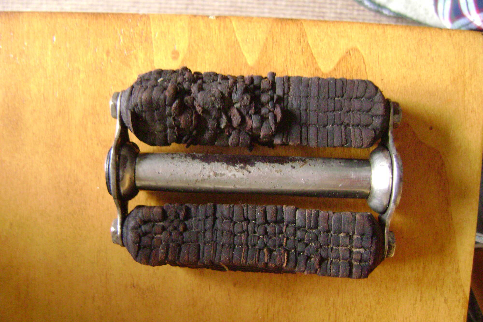 Interessant die leren pedalen. Ik kom bij transportfiets folders regelmatig tegen dat er in staat "pedalen met leren blokken". Ik nam altijd aan dat ze eigenlijk rubber bedoelden. Maar kennelijk bestonden er dus ook echt pedalen met leren blokken.