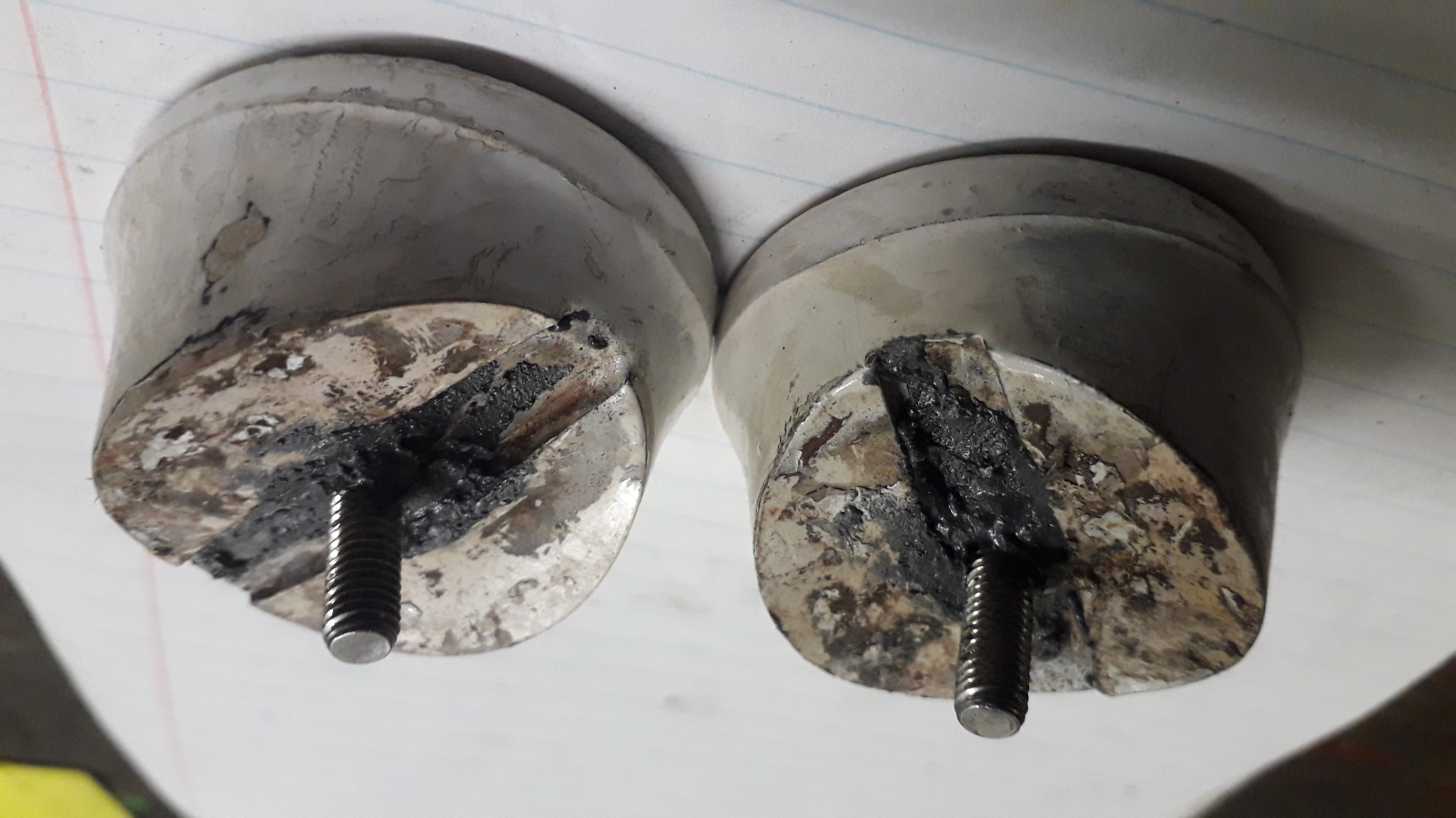 De onderste as is de aangepaste wielas met opgesneden draad en het aangepaste cupje.