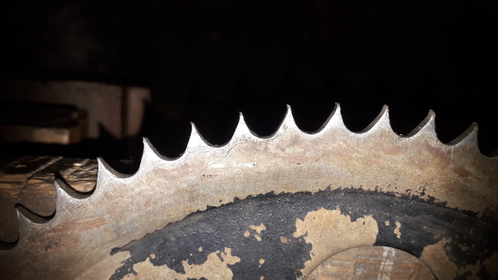 Het tandwiel dat er nog opzat, is waarschijnlijk nog van de eerste montage, want het begon steeds meer op een cirkelzaagblad te lijken.