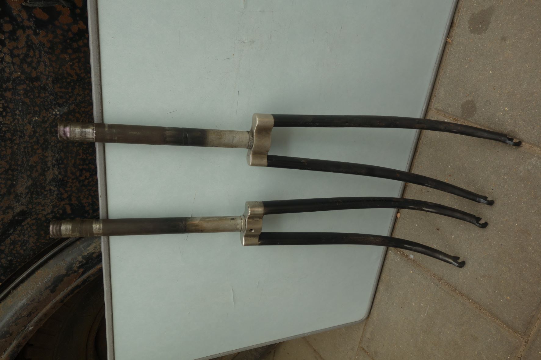 Ook heeft MaartenW een procedé gevonden om nieuwere jaren ‘30 BD/BB voorvorken een kopje kleiner te maken wat ervoor gezorgd heeft dat deze fiets weer een BB voorvork gaat krijgen.