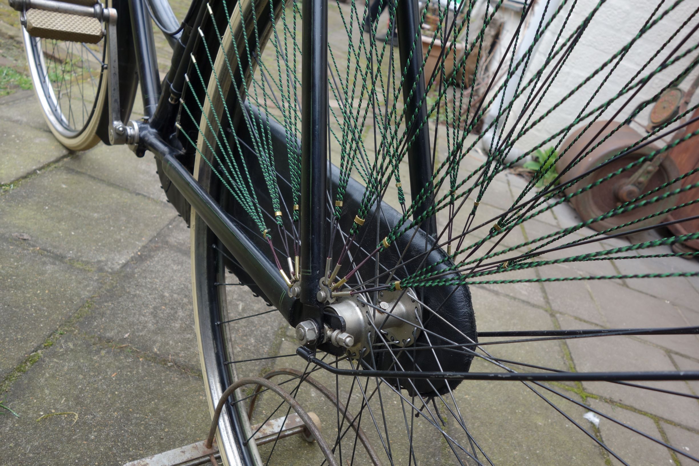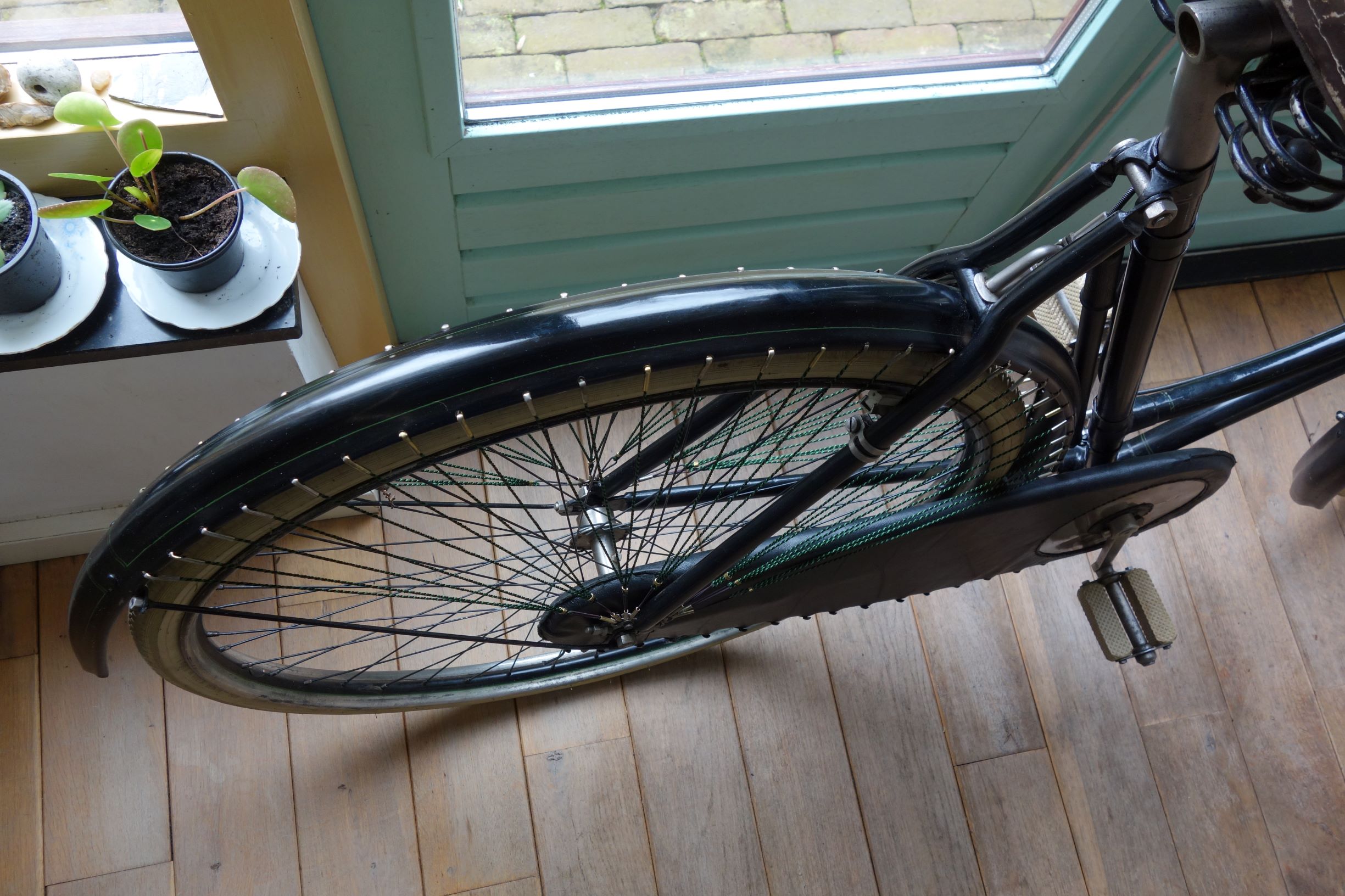 Hij is mooi geworden; enige fiets die uit 1907 is overgebleven en met een remsysteem dat maar heel kort gekort is gemaakt.