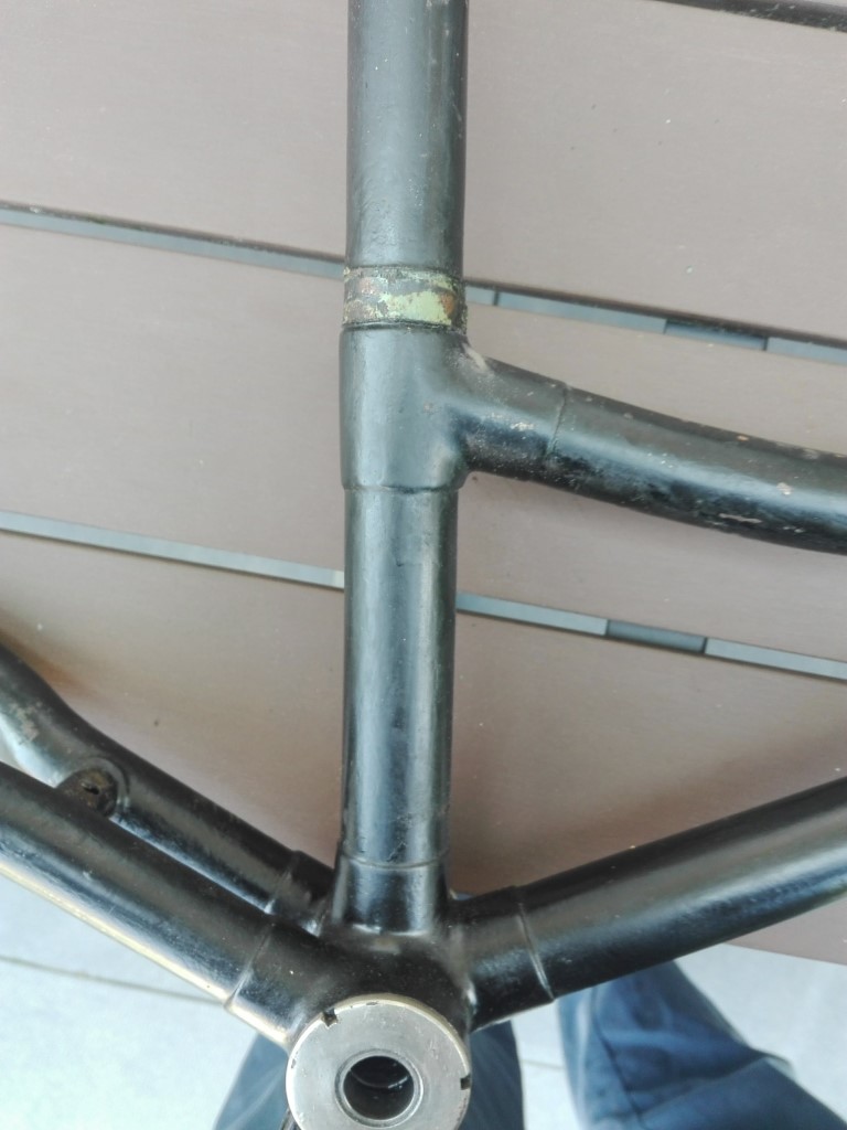 Vandaag lekker bezig geweest met de DZ. Bijgaand wat foto's. Jammergenoeg gaat het niet lukken de originele lak van het frame terug te krijgen. Ik heb een hoekje met afbijt behandeld en het blijkt dat daar ongeveer het kale frame onder vandaan komt. De fiets is ooit lichtgroen overgelakt (wie bedenkt dat...), zoals te zien op de foto met de streep waar de vastzittende pomphouder zat. Daarna is men de boel maar eens flink gaan schuren en heeft er met een grove kwast zwarte zijdeglans op gezet. Ik kies er nu voor de opgebrachte lak netjes af te schuren en na goed gronden frame en spatborden te spuiten met dunne zijdeglans. Even nadenken of ik er dan ook biezen en transfers op zet. Liever doe ik dat niet (meer), maar misschien past dat toch beter. Kunst is dan de nieuwe lak weer gebruikt er uit te laten zien.