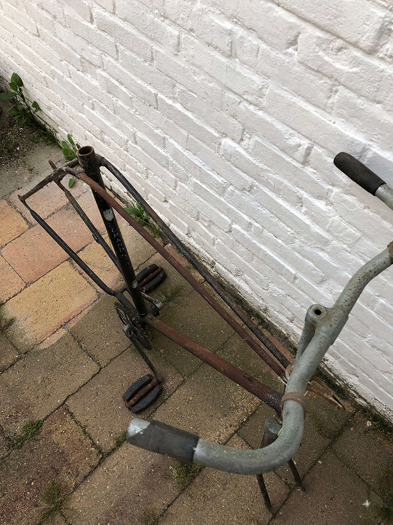 Wie kan mij helpen met het bepalen van het merk van deze fiets? Op de seat tube is nog duidelijk dat er Grand Sport staat. Opvallend is de twin top tube. Eigenlijk moet ik nog even een clos-up foto maken van het embleem boven en onder het "Grand Sport". Het is iig een schild met daarop twee leeuwen die een schildje vasthouden. Boven het schildje staat een kroontje. Wie kan mij helpen?