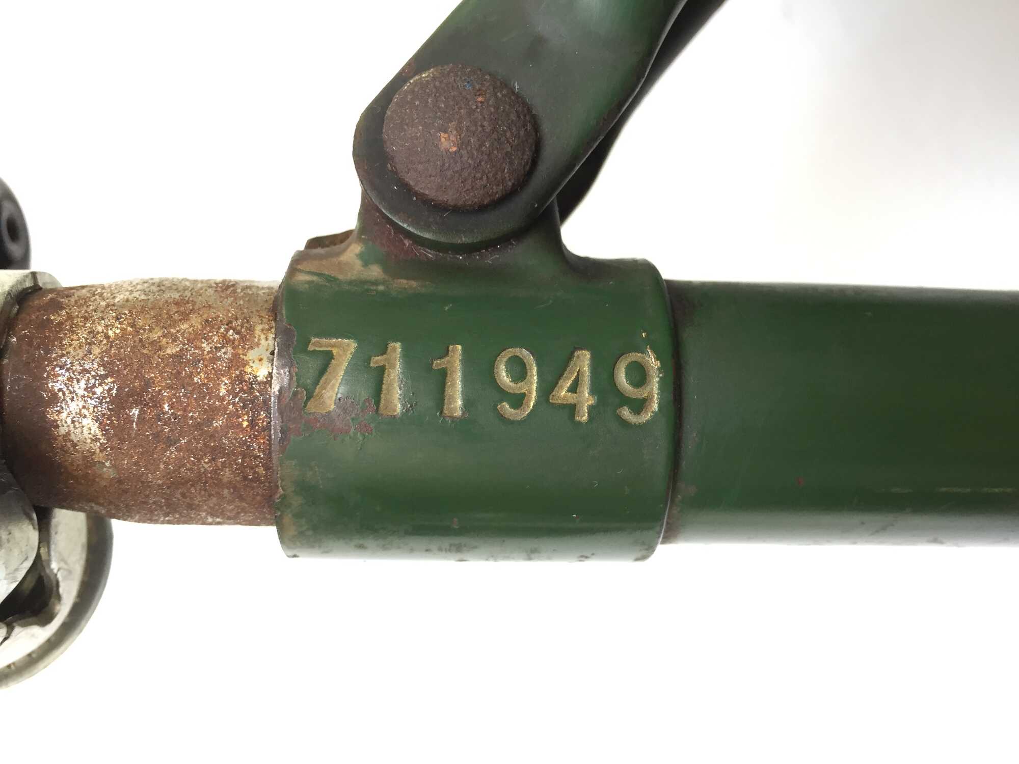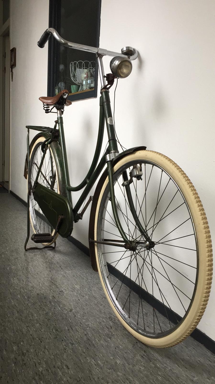 Hier het groene zusje van jou Locomotief, uit 1947 dit stond bovenaan als transfer op de balhoofdbuis, is ook uitgevoerd met Bendix naaf en zelfde handvatten.
