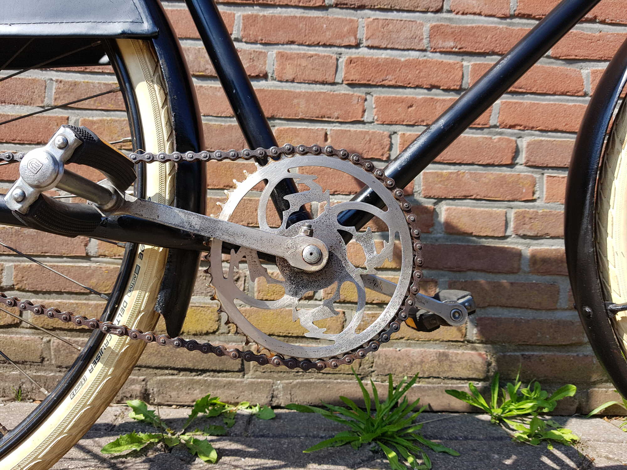 De originele kettingkasten waren volledig gesloten lakdoek, dus dan zie je ook het kettingwiel niet meer. Vaak worden Brooks zadels op oude Nederlandse fietsen geplaatst, gewoon om dat die goedkoop zijn. Van oorsprong zaten er o.a. Lepper zadels op, in het geval van Gazelle met in het merk "Gazelle", in plaats van "Lepper", maar wel gewoon hetzelfde model. Een Lepper drieveer (of model 90) komt er aardig in de buurt. Die worden nog steeds gemaakt, en voor zo'n 25 euro vind je wel een mooi exemplaar. Let er wel op dat alle veren nog heel zijn.