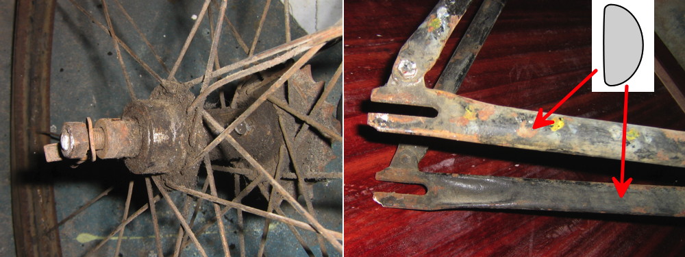 Tot nogtoe heb ik nergens een letter of cijfer gezien ( de naven en het frame zelf moeten natuurlijk eerst grondig gereinigd worden ), maar misschien ziet hier al iemand een hint naar merk of periode ?