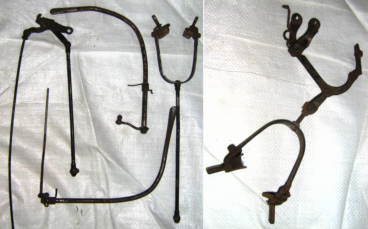 En hier nog de verschillende rem-onderdelen. Het stuur heeft aangesoldeerde nokken, terwijl de overige remonderdelen allemaal met beugels aan het frame bevestigd zijn (dus nergens aangesoldeerde moeren of dergelijke)