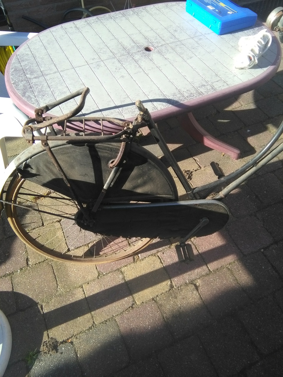 Gratis aangeboden aan de club: een Gazelle dames fiets van kort na de oorlog, terugtraprem.