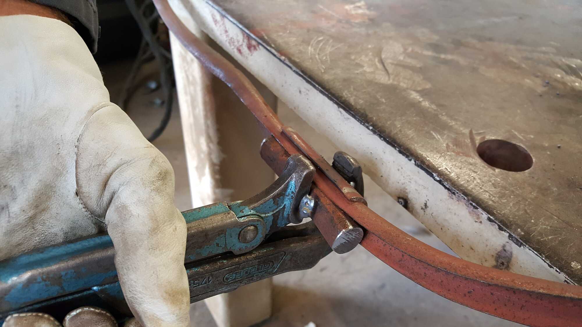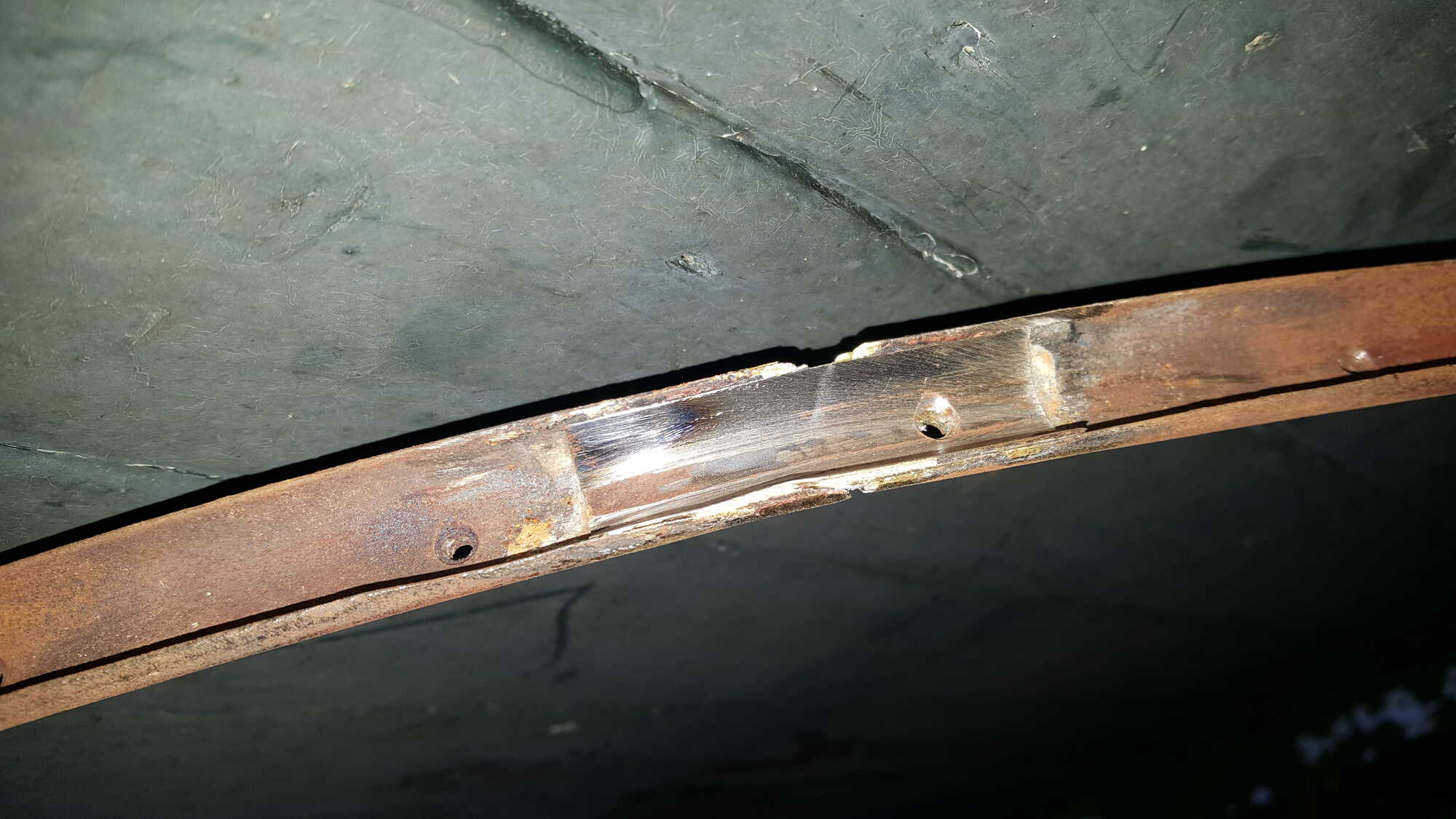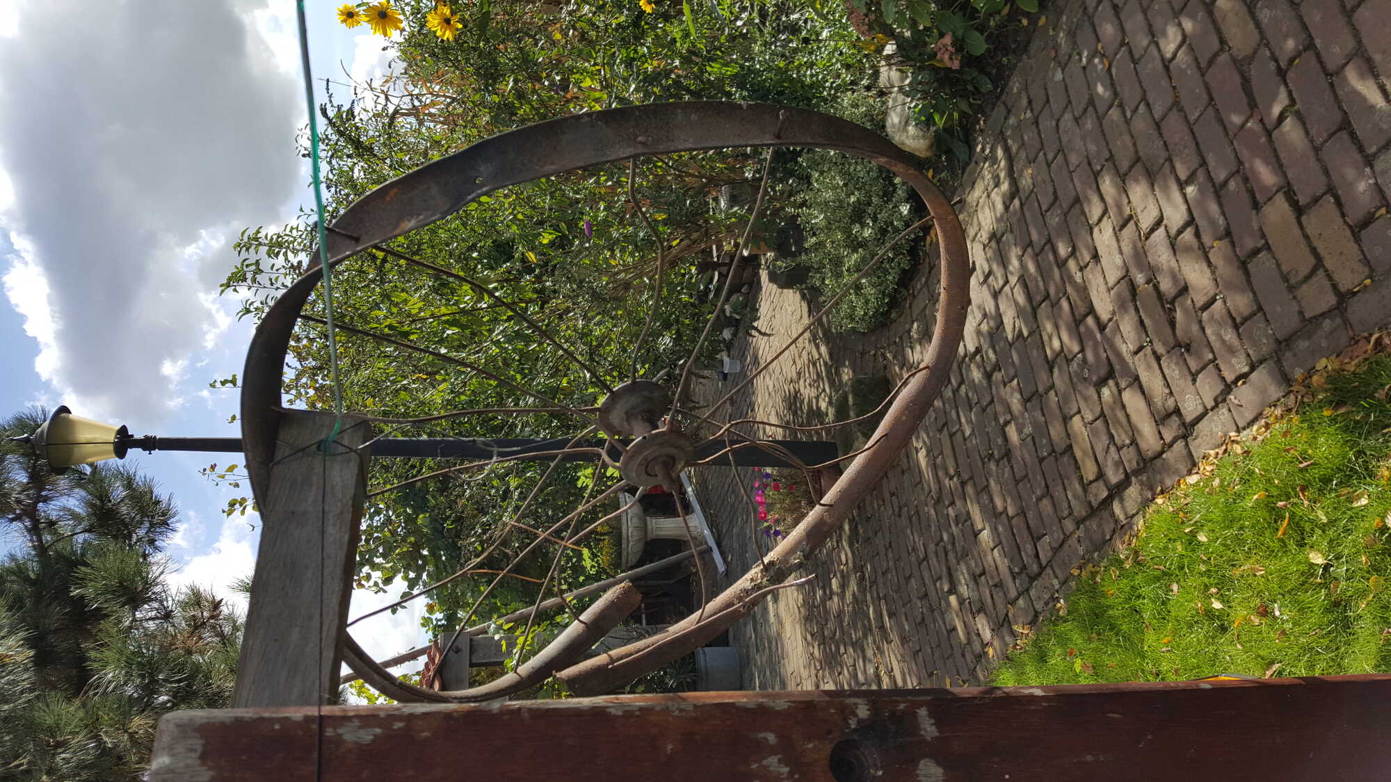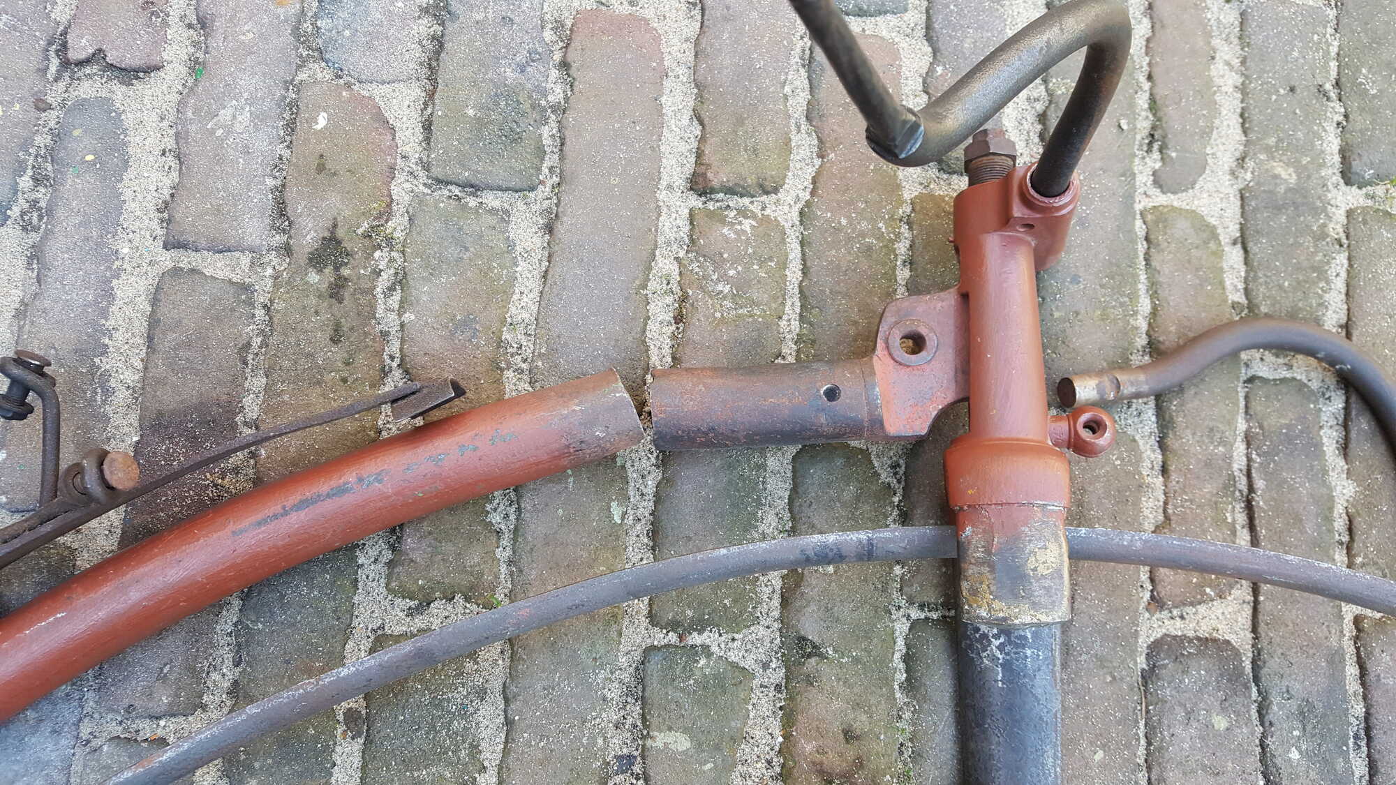 Zo heb ik me afgelopen november met mijn vader bezig gehouden met het richten van de twee wielen waarvan bij beide velgen de lasverbinding ook gesprongen was in de velg. De voorvelg heeft een hoogte van 135 cm en de achtervelg een hoogte van 52 cm. l Vooral bij de achtervelg waren de verbindingsstukken zo dun geworden dat solderen met zilversoldeer net aan lukte.