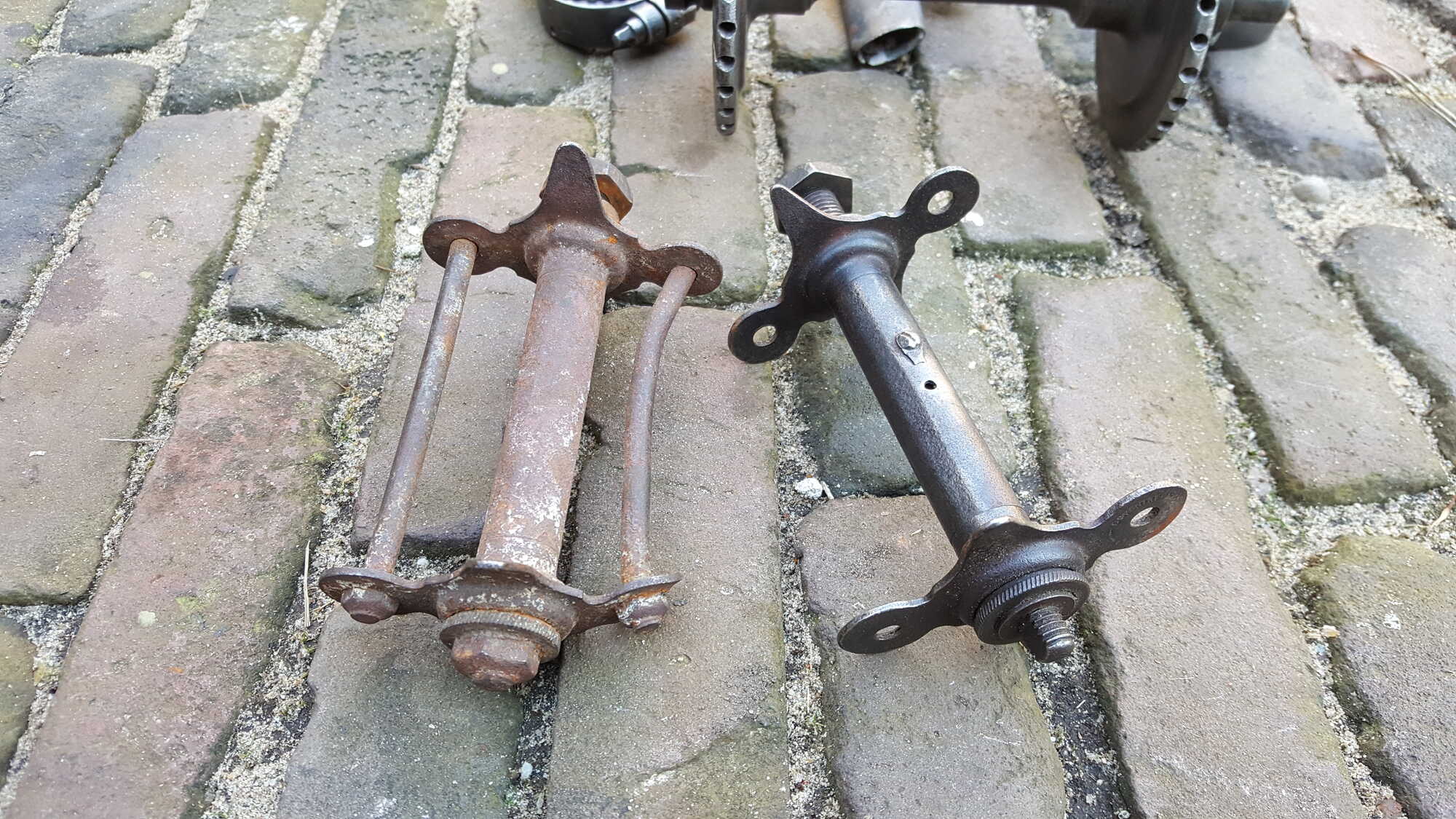 De vorige eigenaar heeft in de voornaaf geslepen om toch de spaken eruit te kunnen krijgen