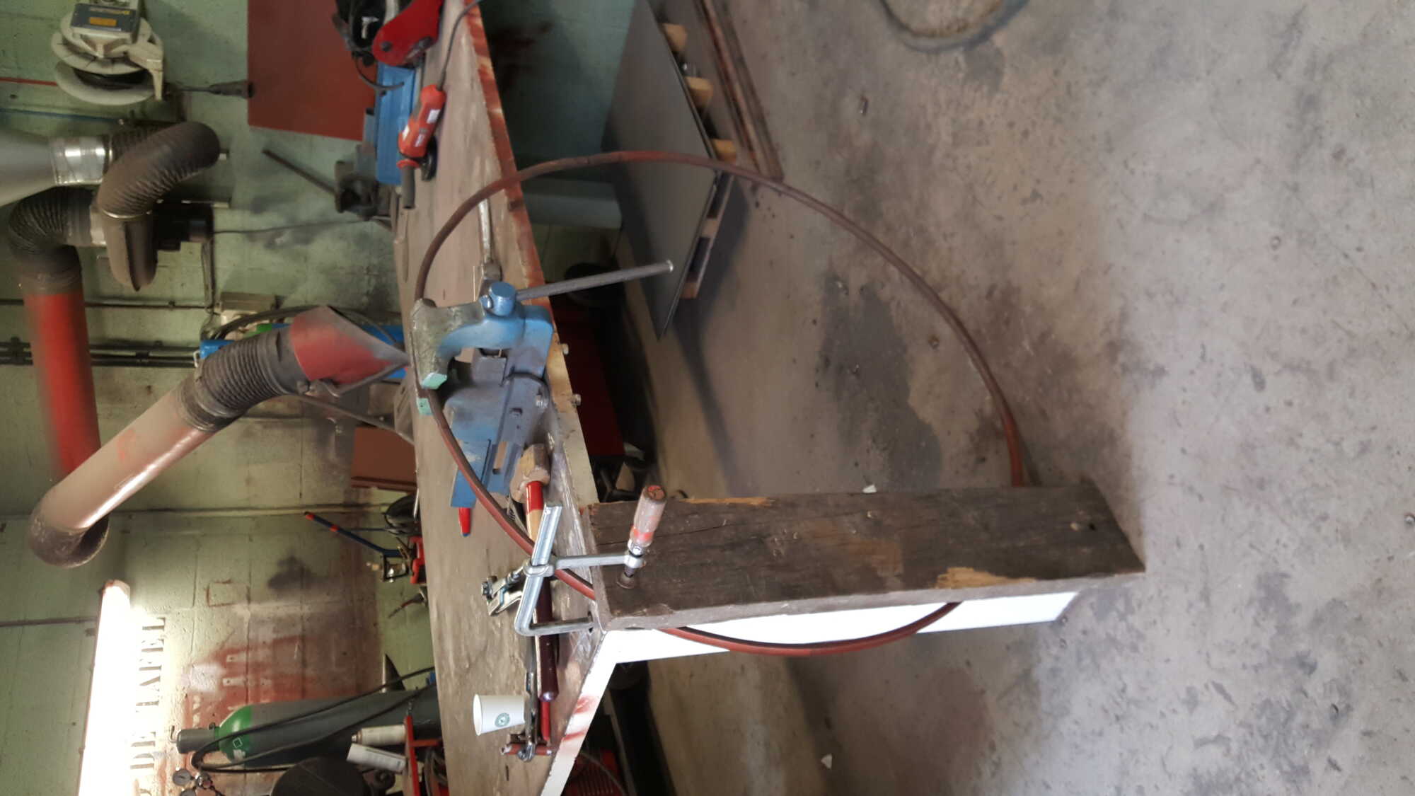 Ik neem een staaldraad ben nog niet uit welke diameter en een boutje M5.