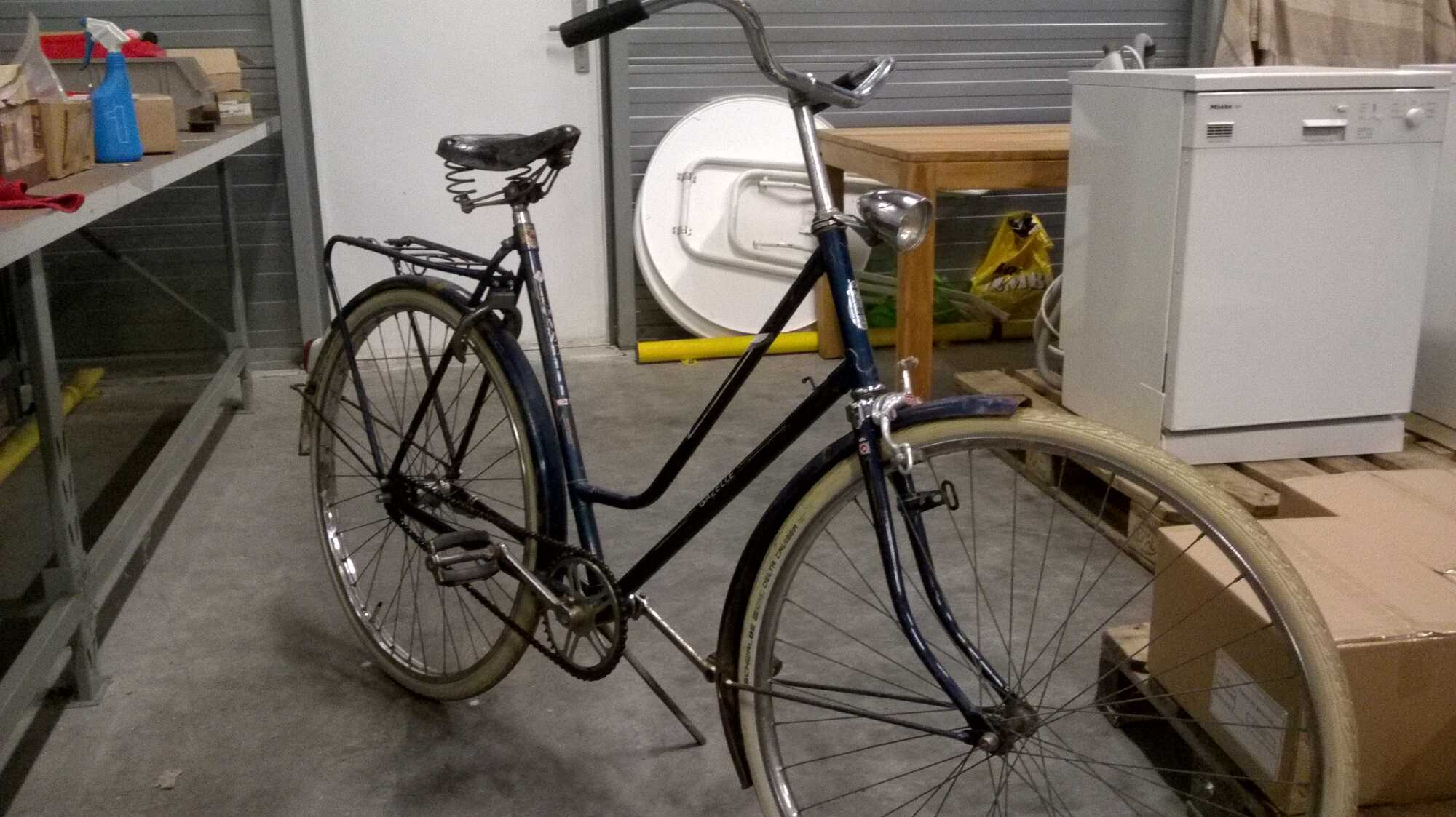 Een Gazelle uit 1940 met framenummer 632506. Deze fiets laat ik zo origineel mogelijk want ik vind dat deze fiets zoveel meegemaakt heeft ..dan moet dat zo blijven.Wel komen er nieuwe banden, pedalen, Brooks zadel e.d. op . En ik ga eens rustig bekijken wat nog meer...zoals verlichting (misschien van die verduisterende verlichtingskapjes of iets dergelijks)