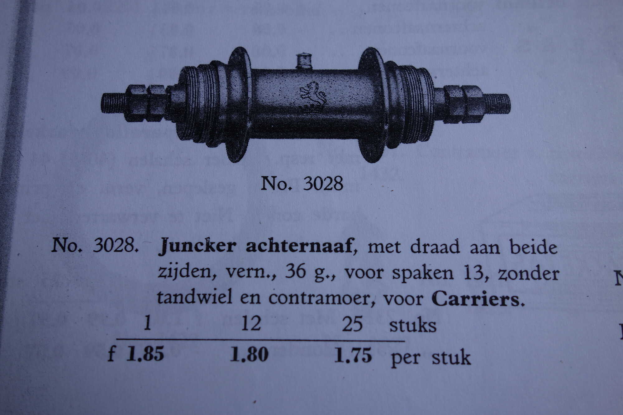 Als er Roelewiel op het rek staat, dan is dat ook een na-oorlogse toevoeging. De naam Roelewiel kwam in 1948 in gebruik als ik het me goed herinner, daarvoor was het nog Standaard. In 1938 gebruikte Juncker ook nog eerdere modelen Standaard rekken, zoals hier te zien: