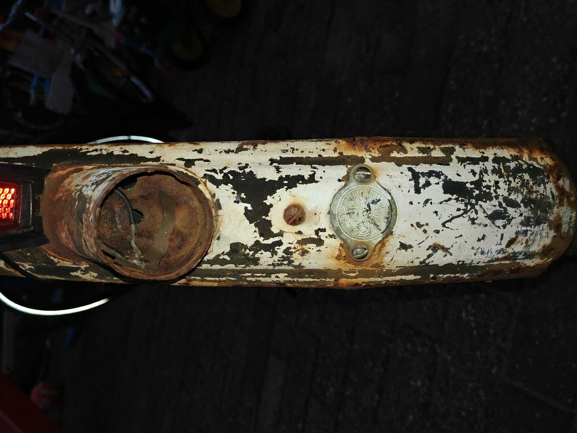 Bijvoorbeeld bolle schroefjes om de spatbordbeugels vast te zetten is echt uit die tijd. Als het goed is zitten er geen moertjes achter maar zijn ze direct met schroefdraad in de beugels vastgezet.