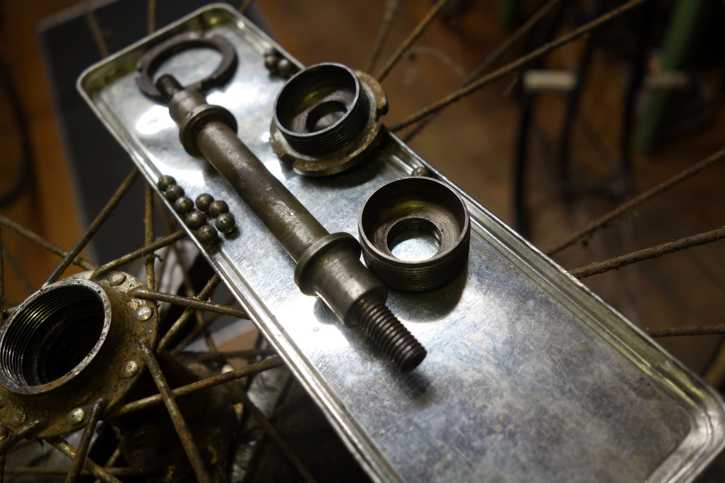 De Centaur`s hebben steevast disc adjusted hub`s en omdat bij deze het voorwiel muurvast zat heb ik het even los gehaald.