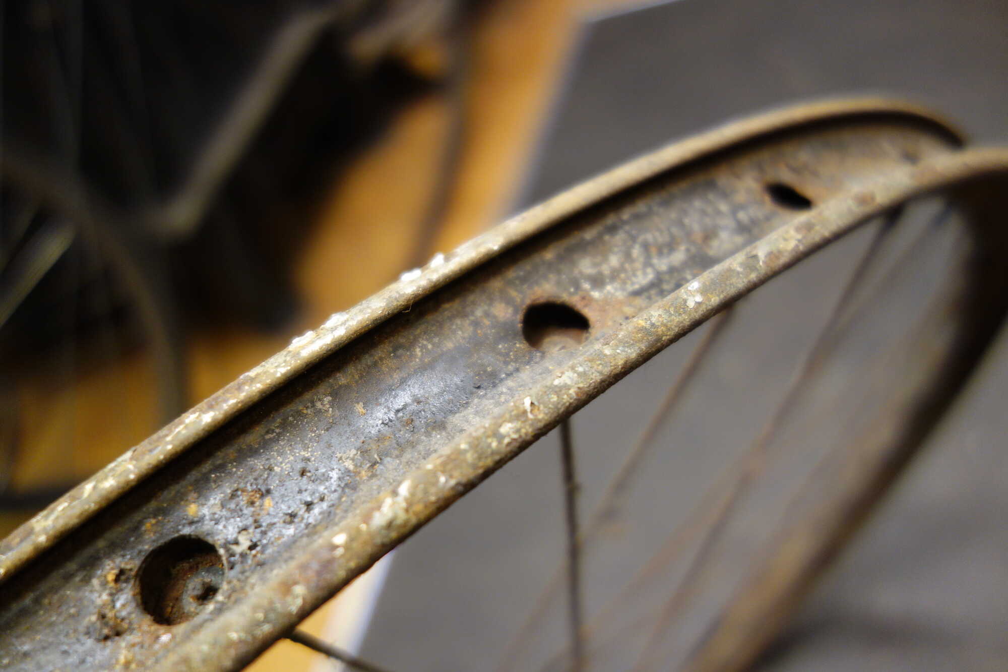 een hielband velg, zoals op vele Duitse fietsen (Wulst Reifen )