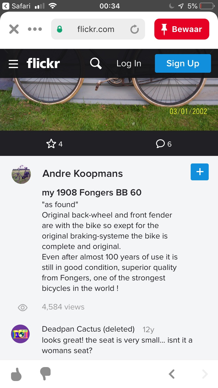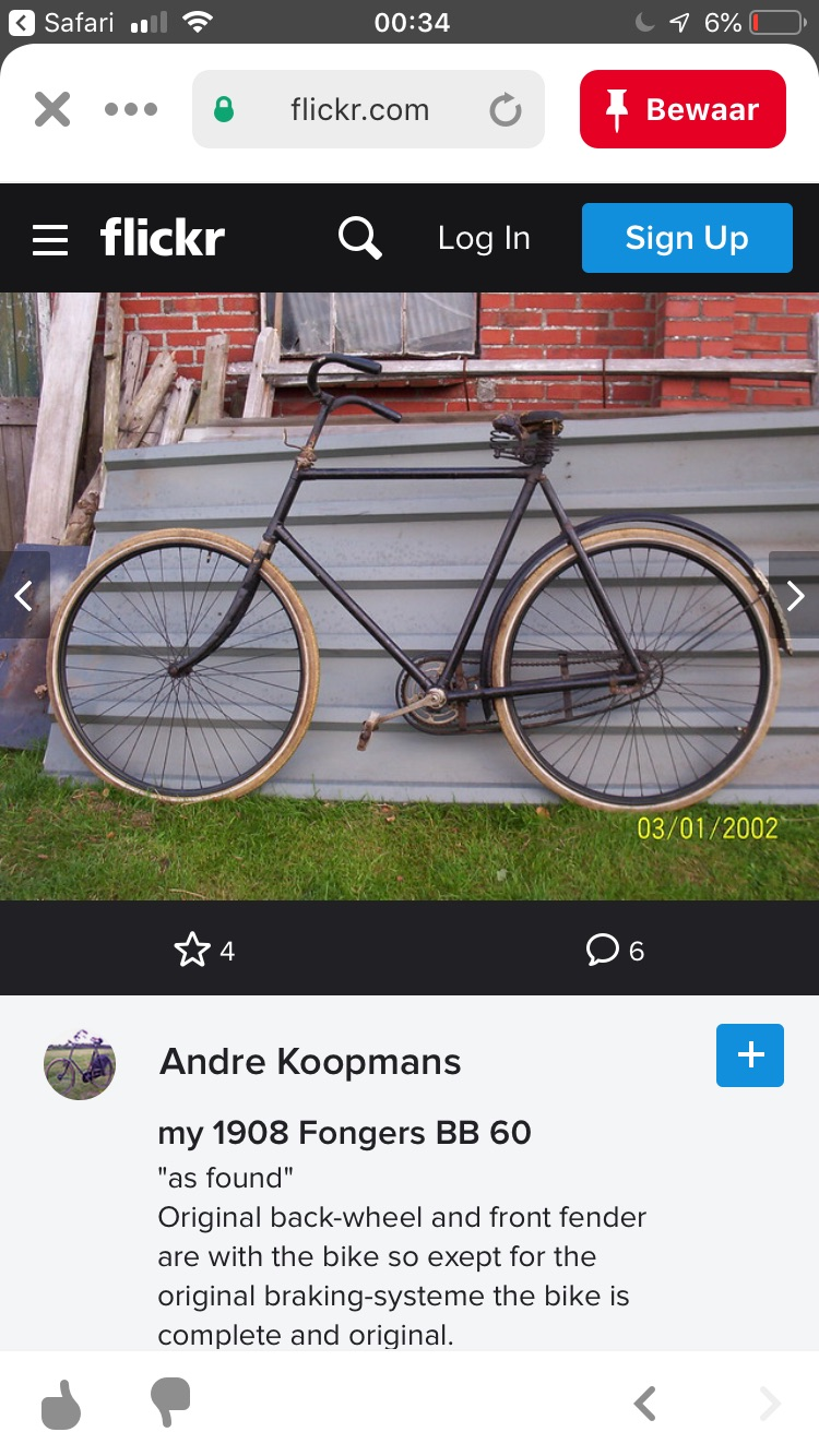 NB: Ik gebruik dit forum bericht even als 'placeholder' om dit rijwiel aan de lijst met bekende Fongers rijwielen te kunnen toevoegen maar het zou natuurlijk veel leuker/beter zijn als de huidige eigenaar een wat uitgebreider bericht schrijft over de fiets. Ik zal in dat geval dit bericht weer verwijderen/ontkoppelen van de lijst.