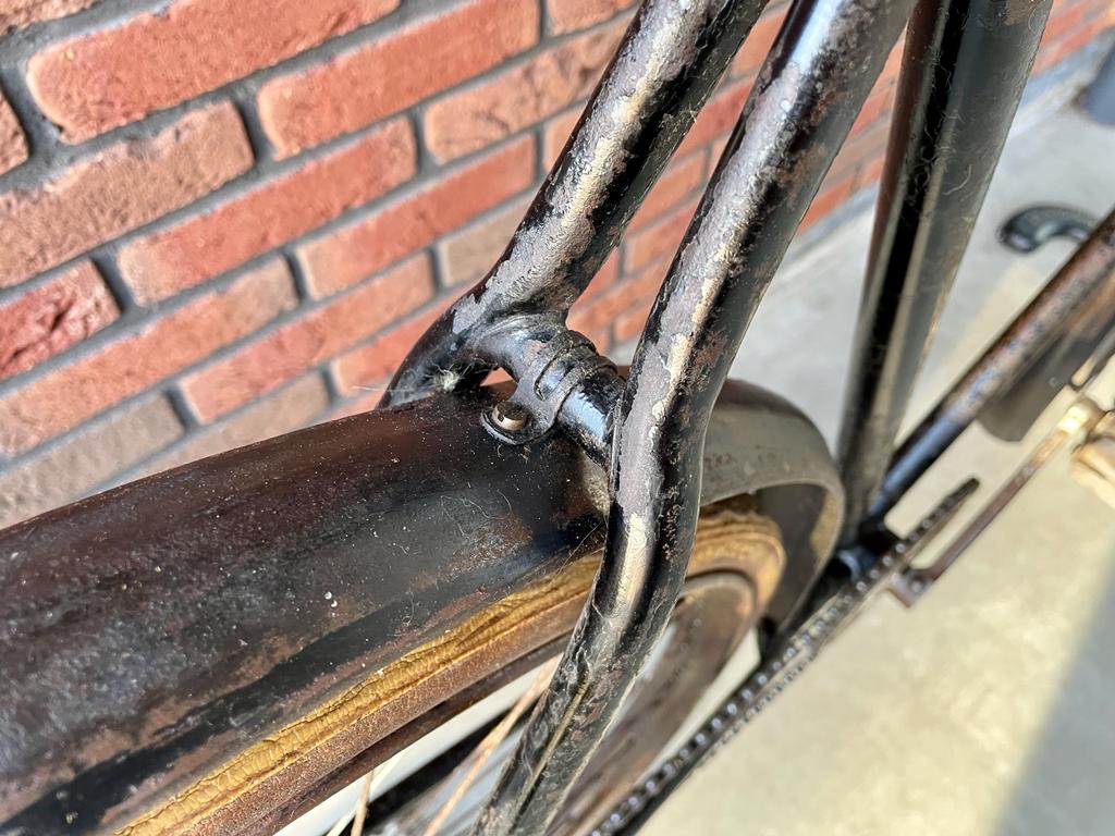 Heeft deze fiets dus een freewheel en geen remsysteem, of een vast tandwiel ? Dat eerste lijkt me wel een linke combinatie idd en niet alleen in Utrecht. Heb je een idee hoe de uitvoering oorspronkelijk was ? Wel heel bijzonder dat de fiets zo lang zo compleet is gebleven !