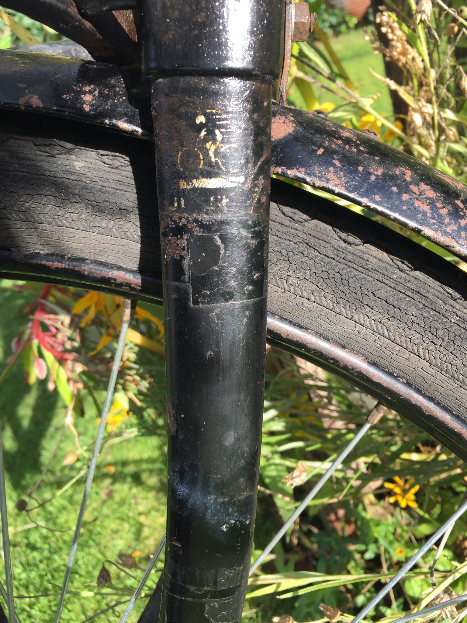 Het was niet gebruikelijk om op een voorvork van een transportfiets een transfer te plaatsen maar hier zitten ze dus wel op.