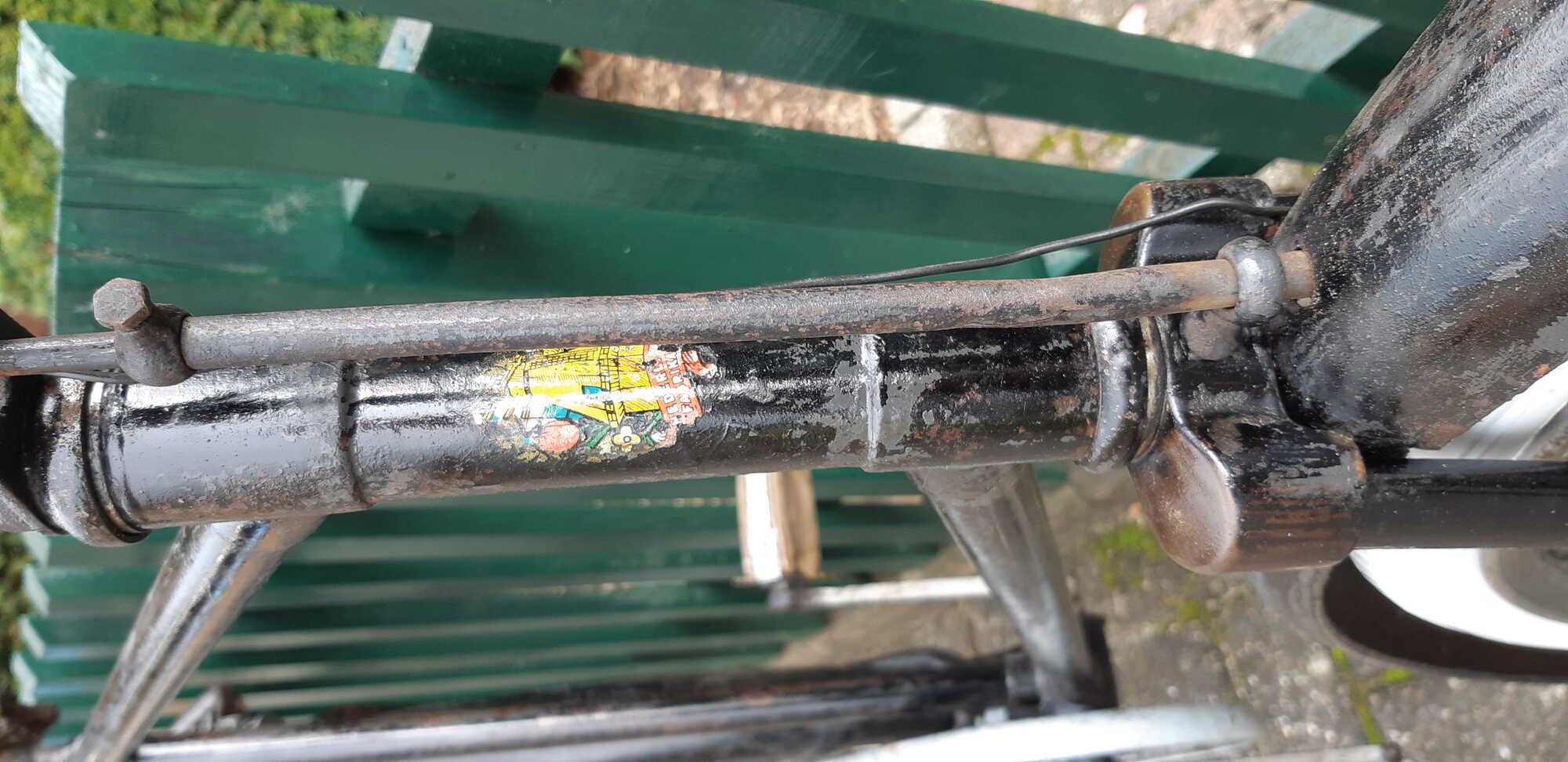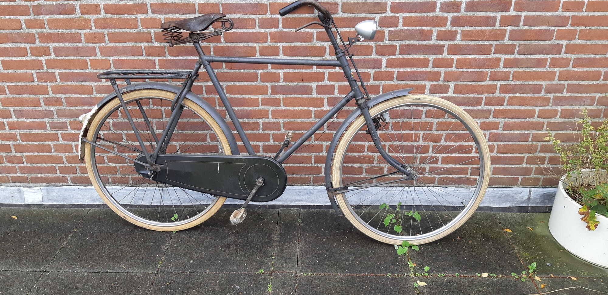 Ik ben Gert van Lohuizen, 44 jaar. Op dit moment heb ik mijn project rijdbaar. De grote vraag die ik heb is weet iemand welk merk fiets. De striping is denk ik orgineel. Toen de fiets in mijn bezit kwam was deze grijsgroen geschilderd. Die verf heb ik grotendeels verwijderd en het zwarte frame weer in de blanke lak gezet. Ik vindt het wel mooi om de patina te bewaren.