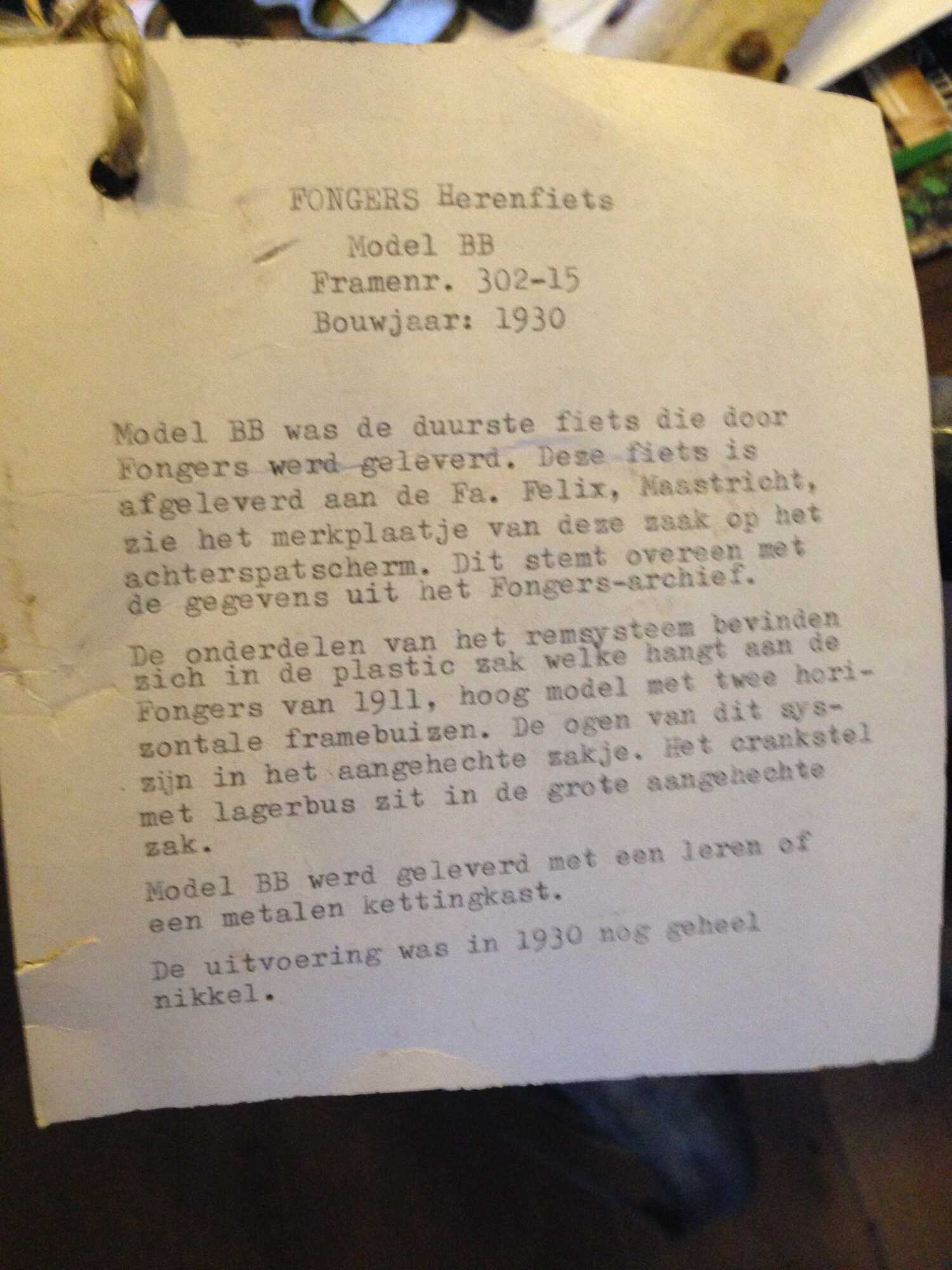 Fongers BB 60 uit 1930 - 302-15 (gebruikt als donorfiets)