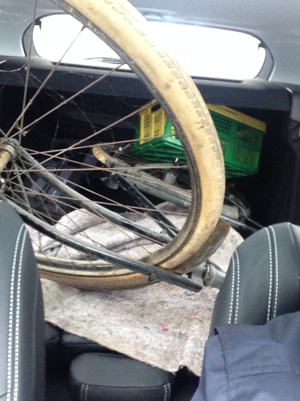Interessant aan deze fiets (ten behoeve van de spatborden discussie) is dat deze fiets de 'breinaald' stangen heeft + de bij de liggende achtervork langer doorlopende spatborden.