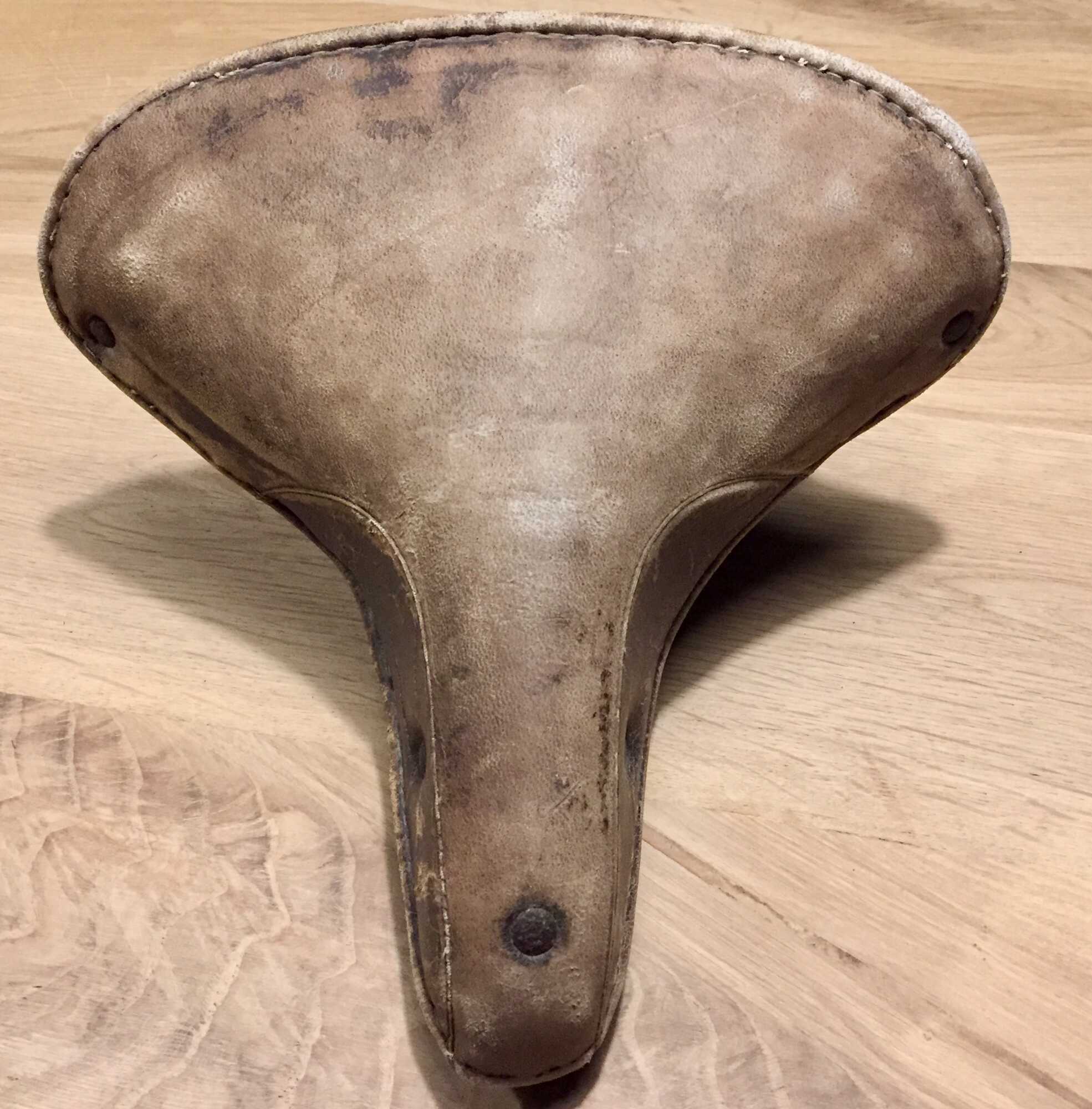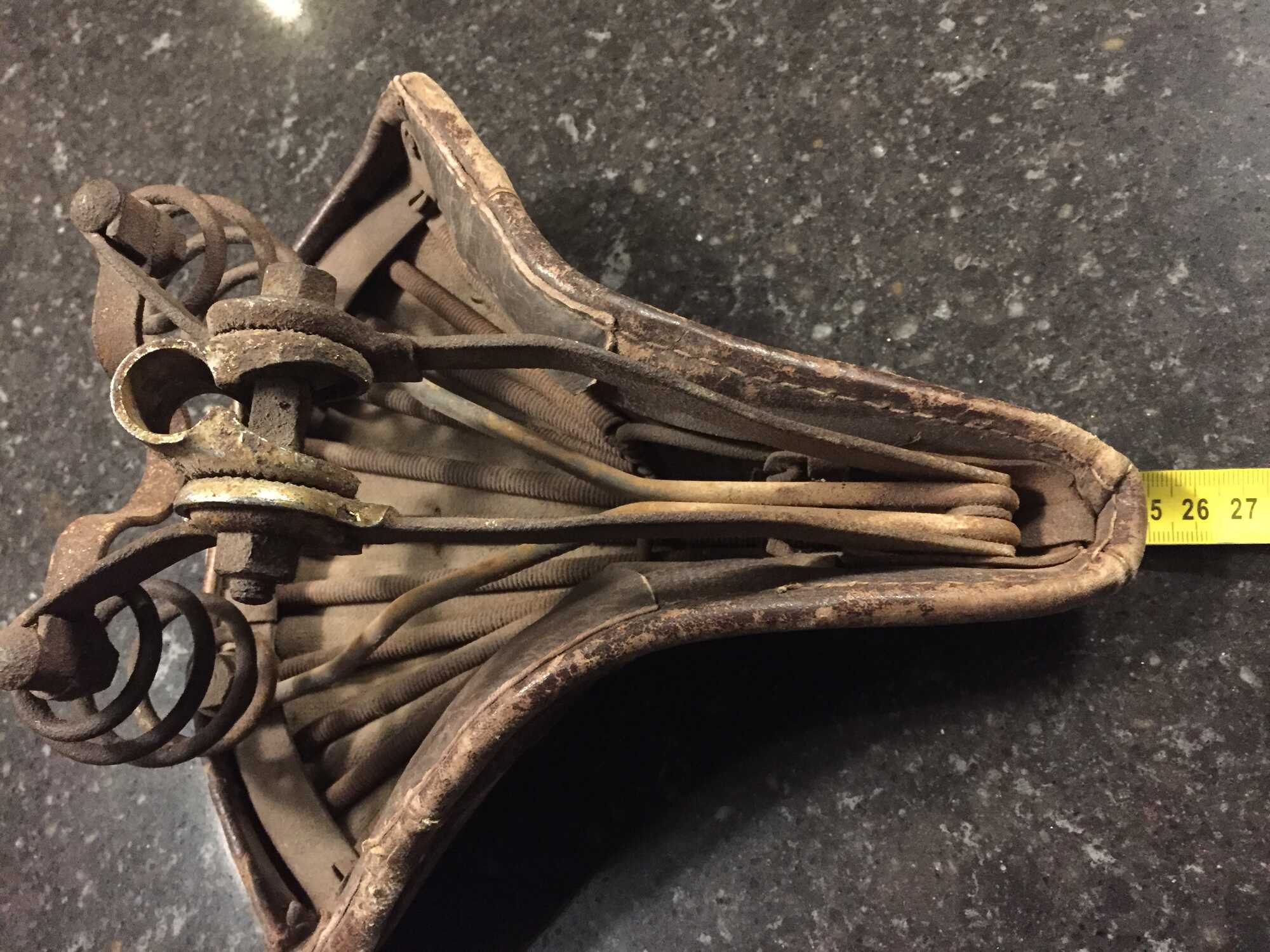 Ik vermoed dat het een herenzadel is alhoewel er wel een hele kleine zadelstrop onder zit. Ik zal het nog nameten en hier melden. En zitten inderdaad trekveren onder het zadeldekje. Aanvulling de zadelpen diameter is slechts 1,6 cm. Of het zadelstrop origineel is is twijfelachtig. Een haakse zadelpen zou er opgezeten moeten hebben vermoed ik