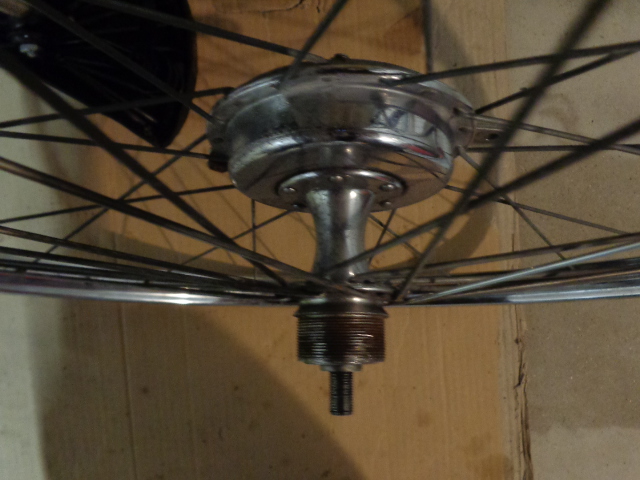 Ik had het achterwiel naar een fietsenmaker gebracht omdat er een paar spaken gebroken waren. Helaas had hij het freewheel met geweld moeten verwijderen, daar was kennelijk in het verleden al aan "gerommeld".
