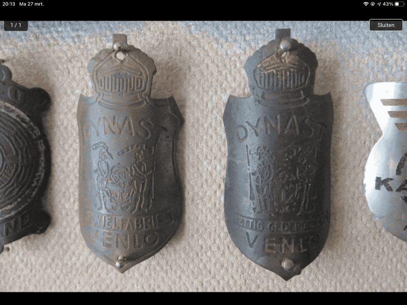 Sinds kort ben ik in het bezit van deze prachtige herenfiets, maar veel dan wat er op het plaatje staat weet ik niet. Er staat Dynast rijwielfabriek Venlo op en daar eindigt zo'n beetje mijn kennis wel. De fiets is nog in de staat dat we hem vonden. Dat wil zeggen er zijn nieuwe banden opgezet, de fiets is goed schoongemaakt en alles is los geweest om te smeren. Niet i, hele lieve handige vriend. O en de fiets heeft er inmiddels ruim 100 kilometer opzitten en rijdt geweldig. Hoewel ik een vrouw ben, rij ik graag op herenfietsen in het algemeen en deze specifiek. Helaas weet ik vrij weinig van de fiets en kan ik het de voorgaande eigenaar die er zo weinig omgaf, ook niet om vragen.