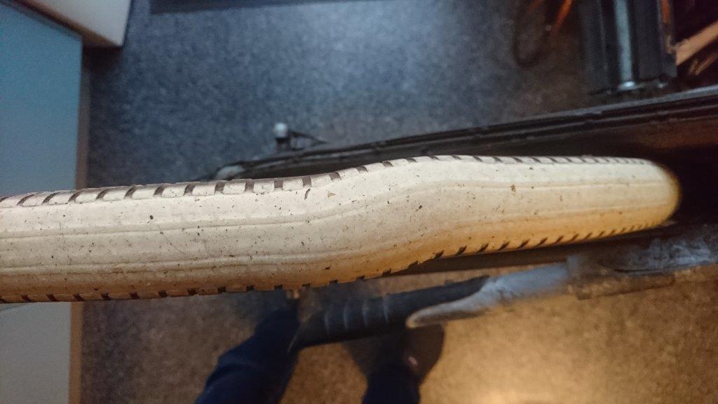 Dat was in't ieder geval zo met de creme kleurige Fat Frank van Schwalbe. Die was nog niet te koop bij de dealers maar ik had er wel al een paar van de importeur. Daar was het rubber niet goed van en een van de twee kwam na een tijdje van de velg af. Daar heb ik met latere banden van hetzelfde type nooit meer iets van gemerkt.