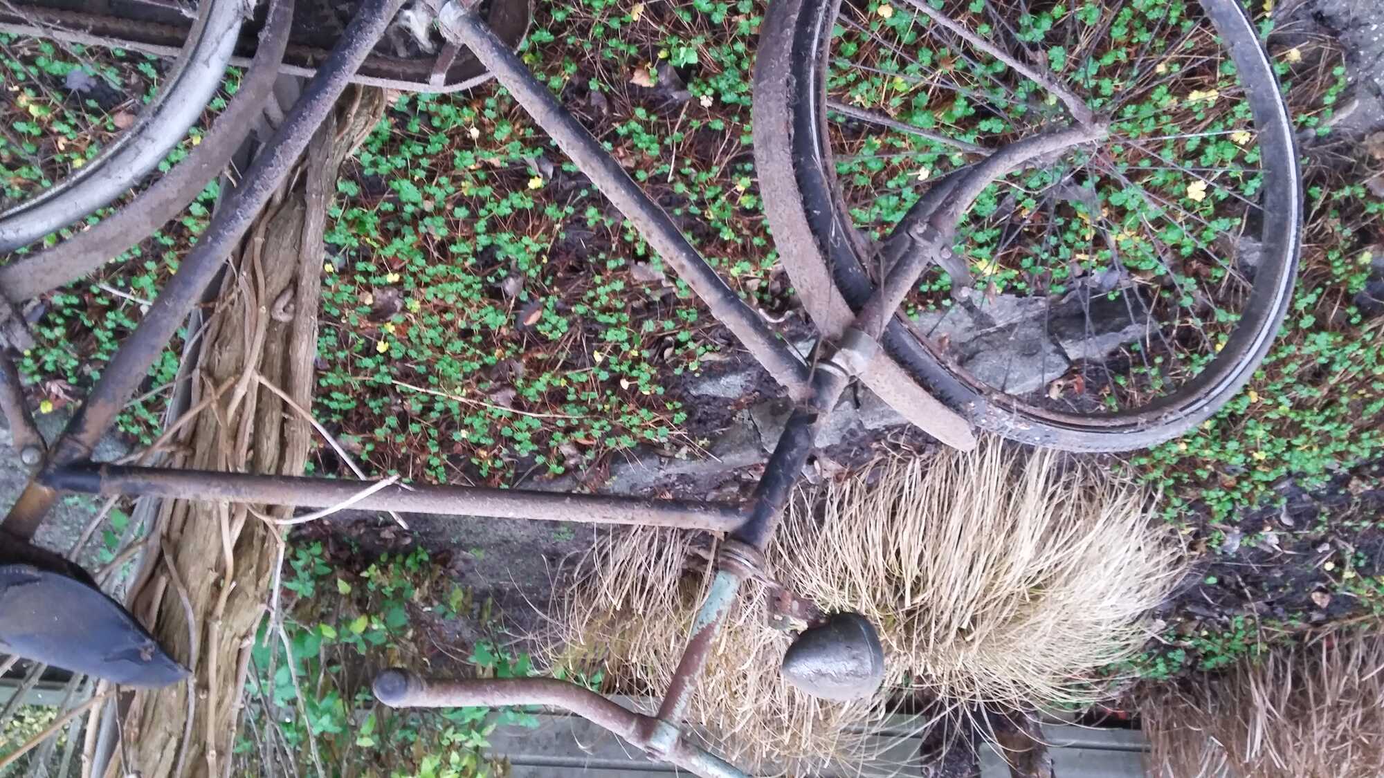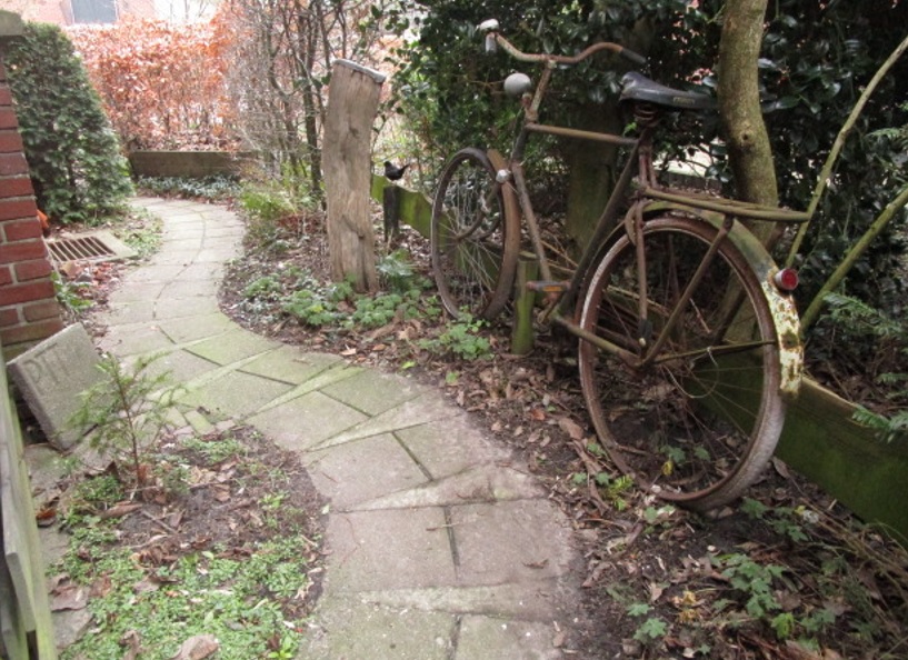 1 - Naar een bezoektuin brengen waar meer oude fietsen staan, ter tuindecoratie.