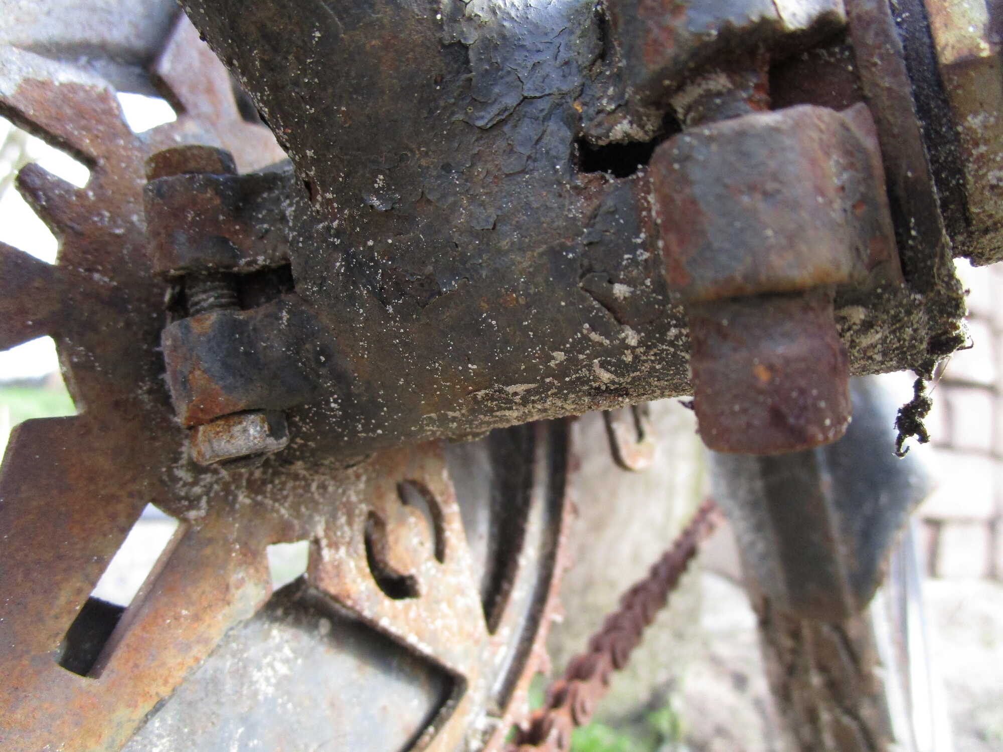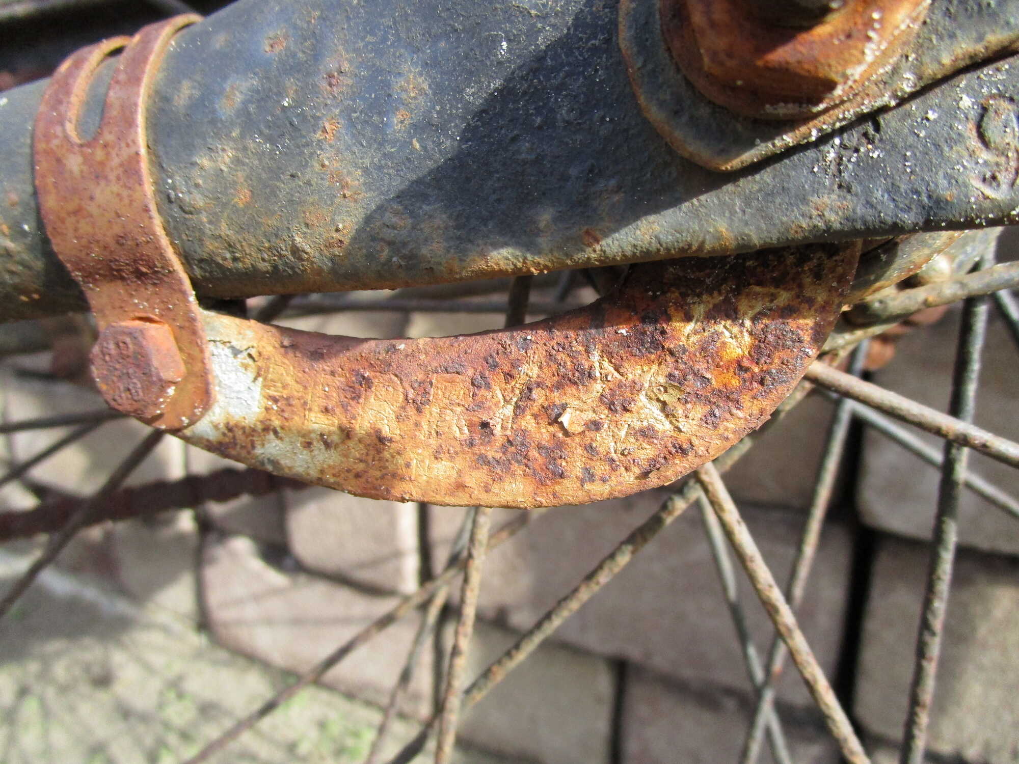 De verbindingsstukken tussen het rek en het stuur zijn helaas vervangen. Dat waren blokken ijzer met gaten waar schroefdraad in getapt was.