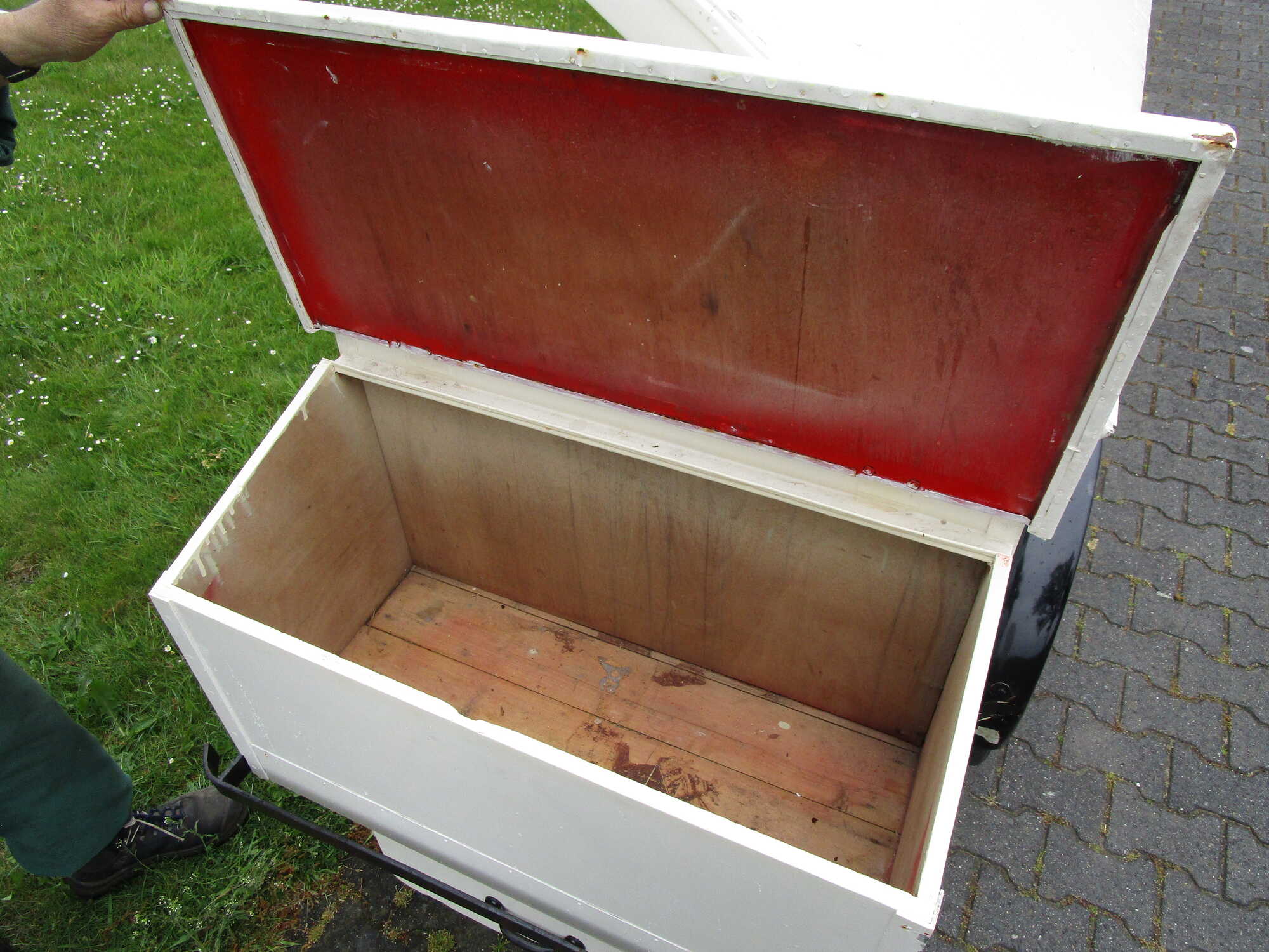 Er werd gestopt met de intentie om het ding ergens op ons forum te tonen. Meer nog, want, zo bleek, er staat een bordje bij: te koop. Er kwam al gauw een man naar buiten gelopen.