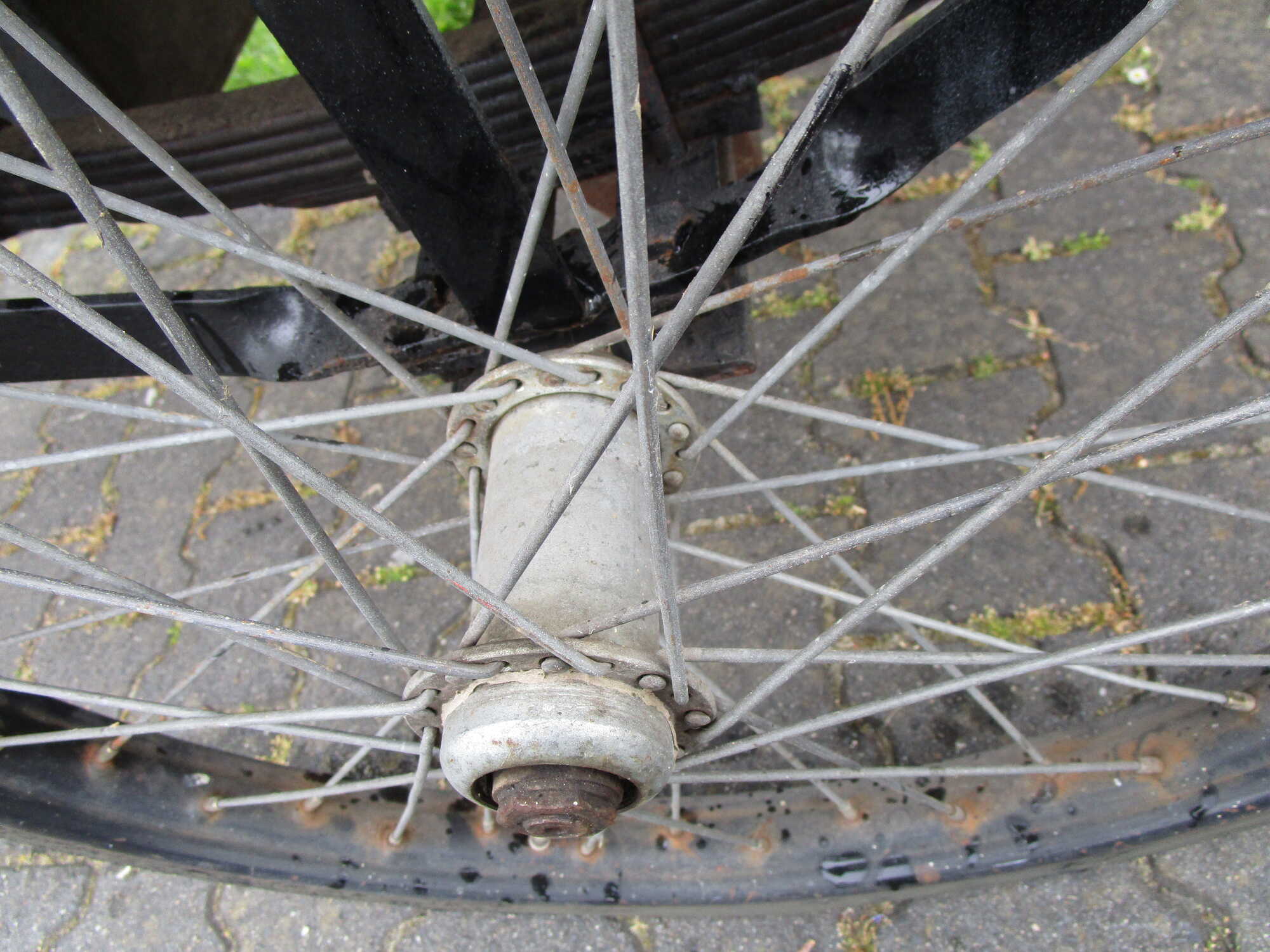 "Mankeert niks aan", zei hij. Waarna ik hem zeer misprijzend aan keek. "Voorzichtig met uw uitspraken ..." en meteen bleek dat er minstens een halve centimeter speling op het achterwiel zit.