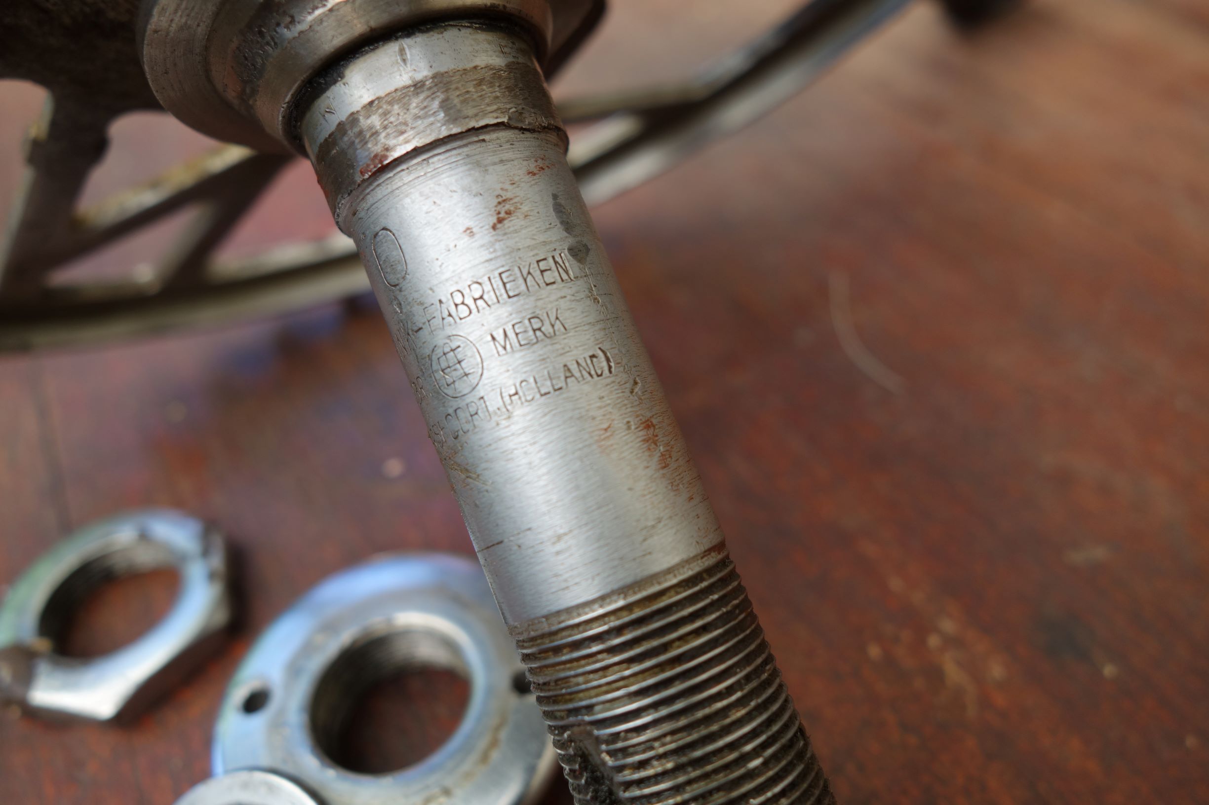 Mooi dat hij nog zo origineel is, zelfs nog met de originele Eysink trapas. Ik ben in "De Nederlandsche Rijwielhandel" verschillende advertenties tegengekomen van Eysink trapassen, dus leuk zo'n exemplaar te zien.
