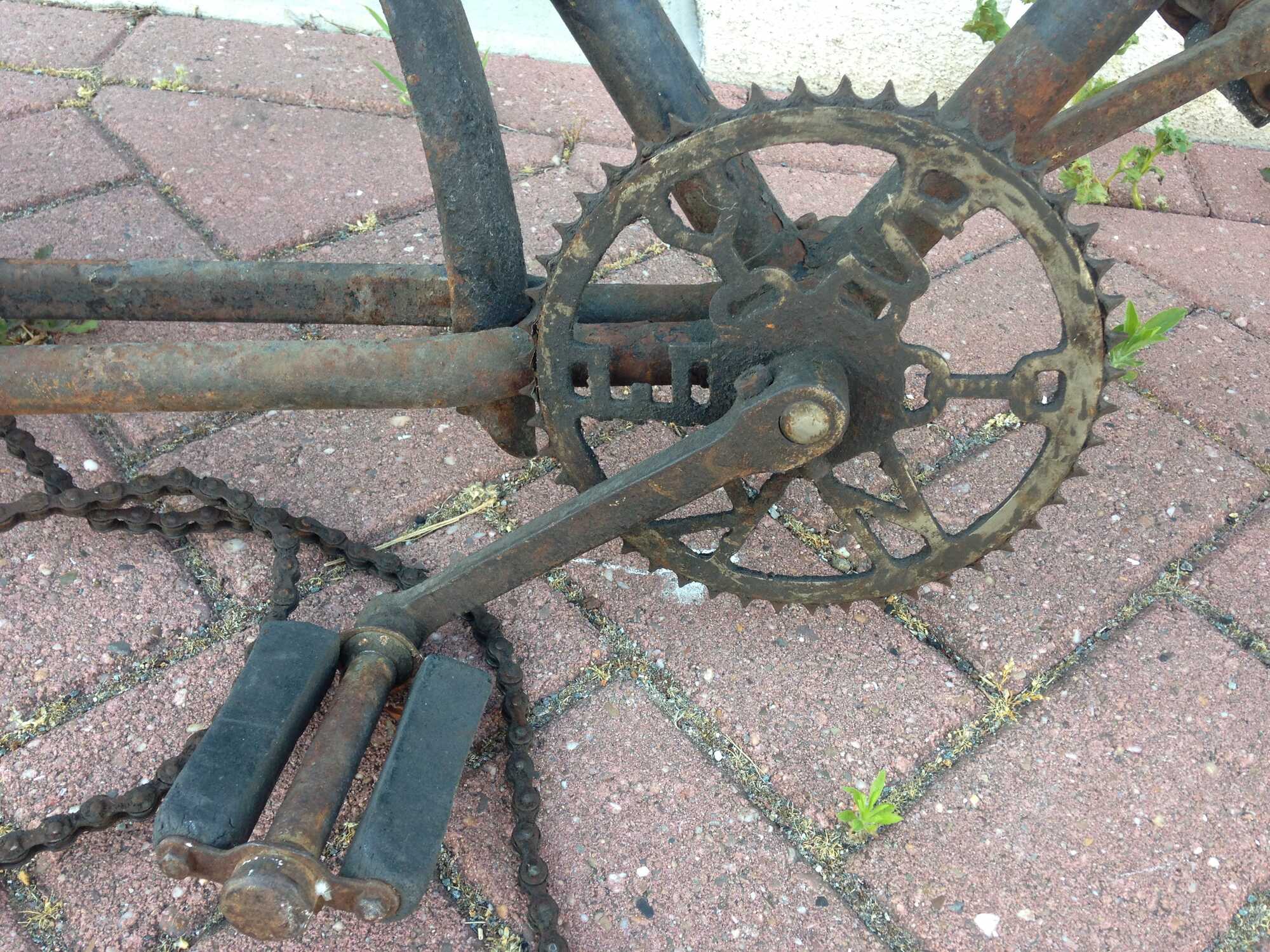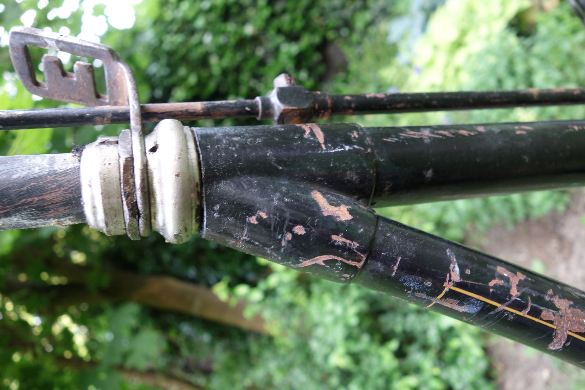 De vorkkroon is direct vernikkeld maar zeer waarschijnlijk heeft daar chroom overheen gezeten. De trapas en de voornaaf laten namelijk chroom zien.