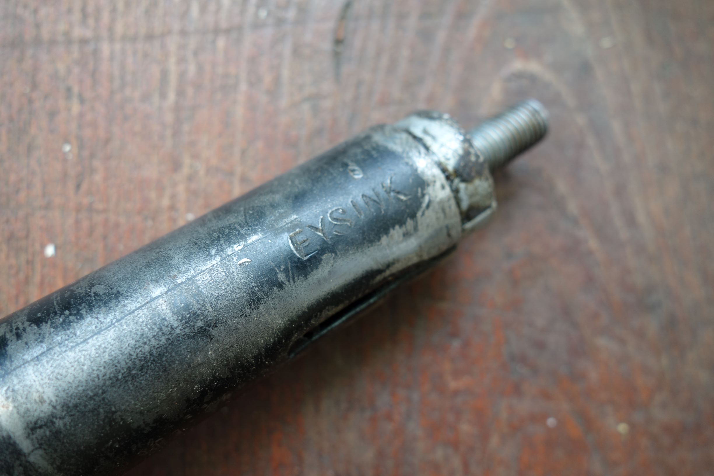 Typisch detail, op de verticale stuurbuis staat onderaan Eysink en aan de andere kant het tekentje van Alexander Coppel Solingen.