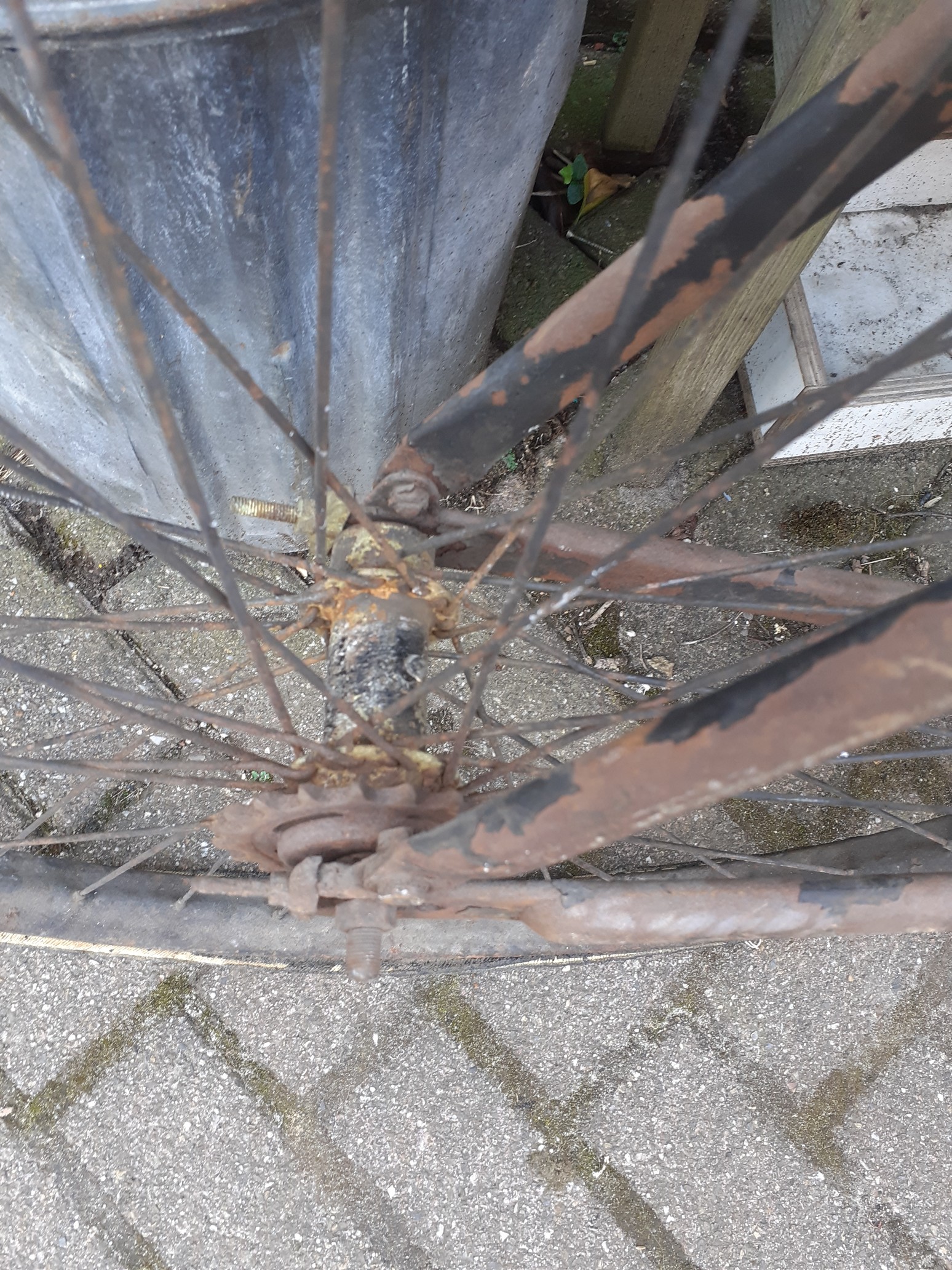 Heb je de naven al uit elkaar gehad? Daar kunnen ook nog inslagen op de cups en as te vinden zijn. Leuk dat het nog een doortrapper is.