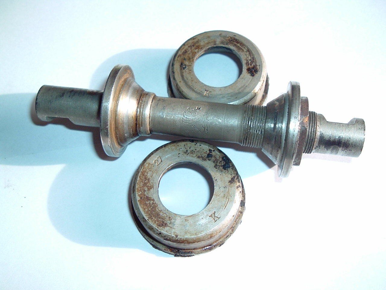 Oh wacht, dat was niet de trapas van de andere Juncker transportfiets uit 1929, maar die van jou. Dan geven die letters zeker het jaartal aan, als die trapas uit een Juncker uit 1927 afkomstig is.
