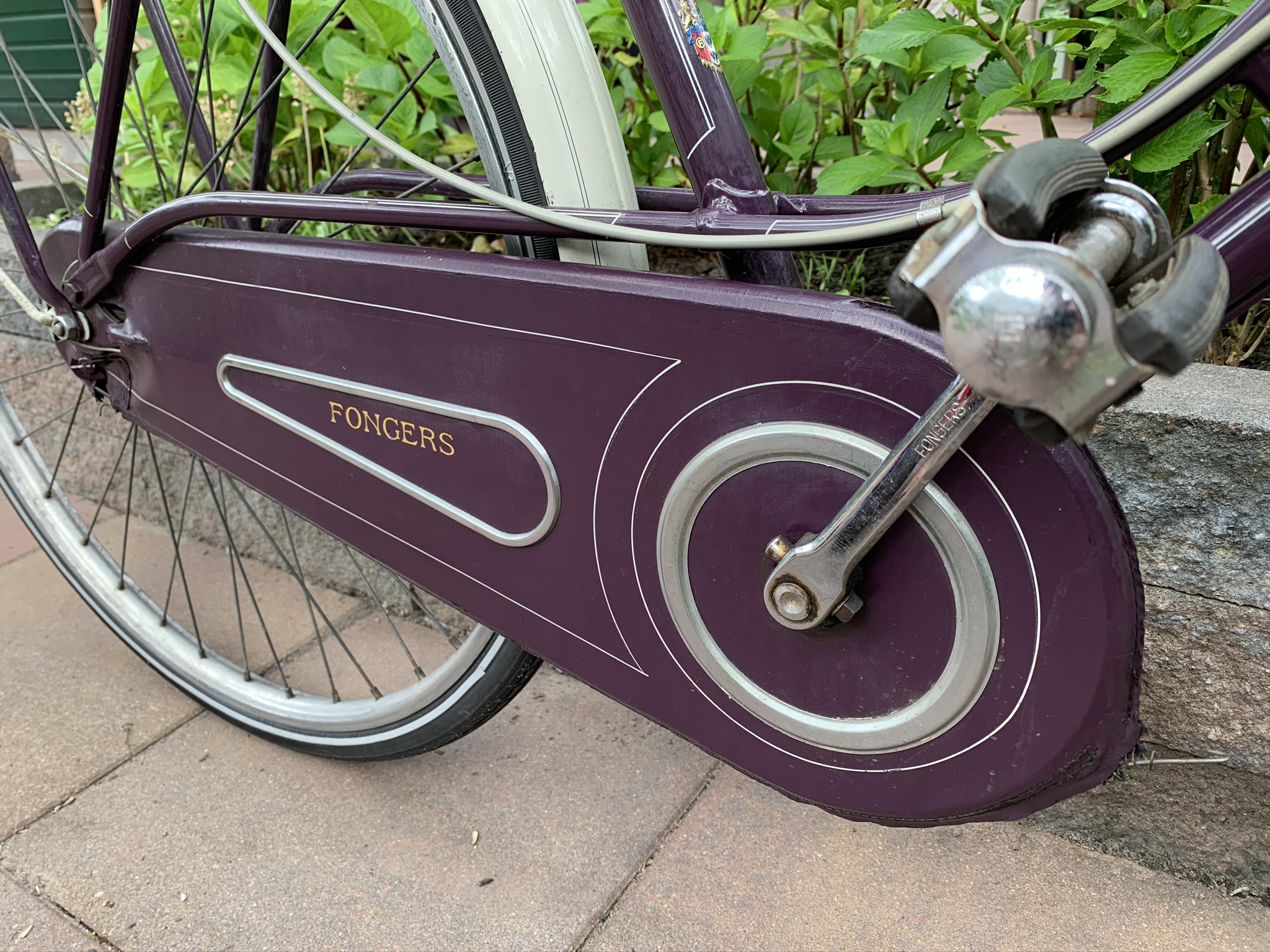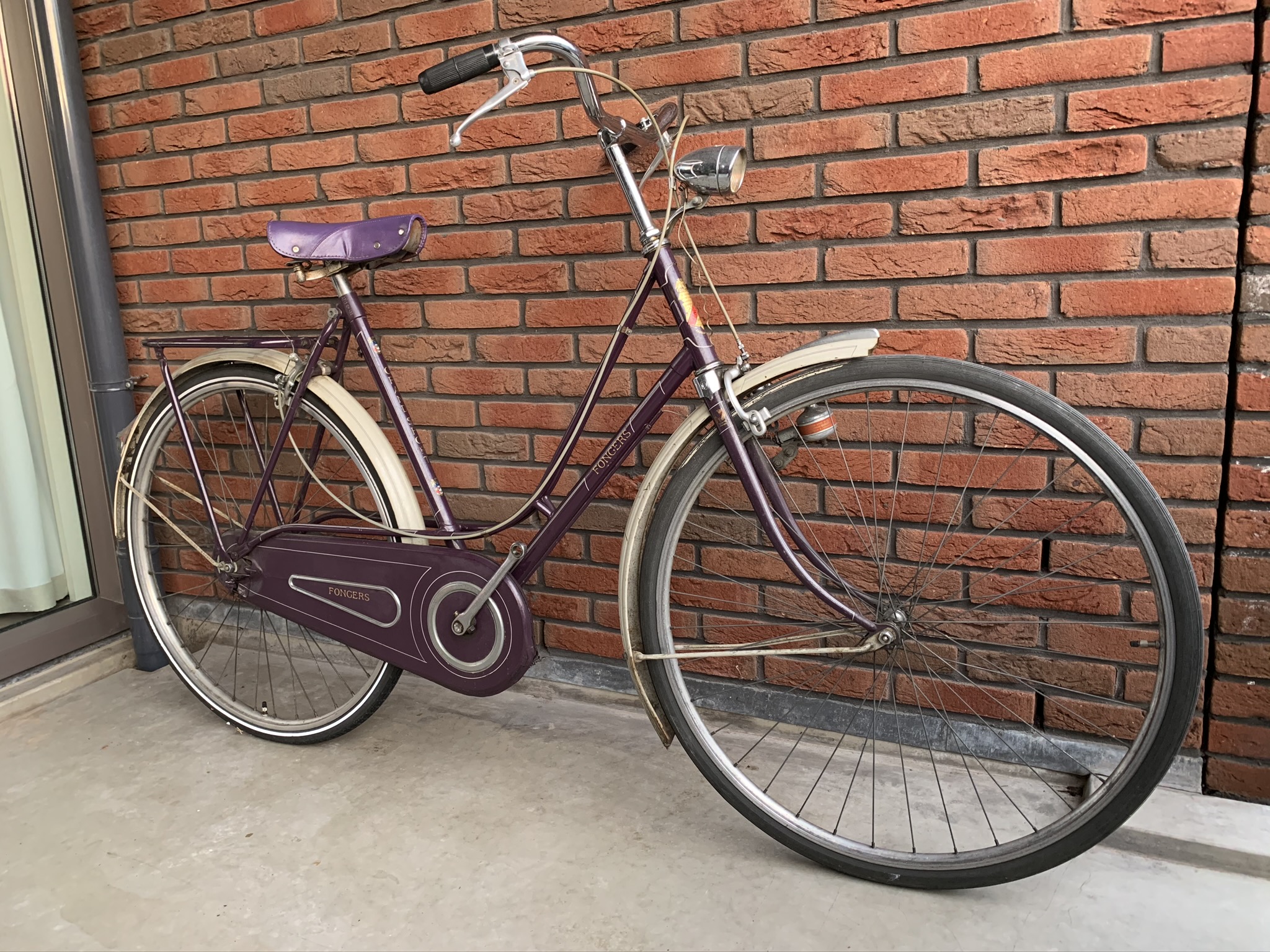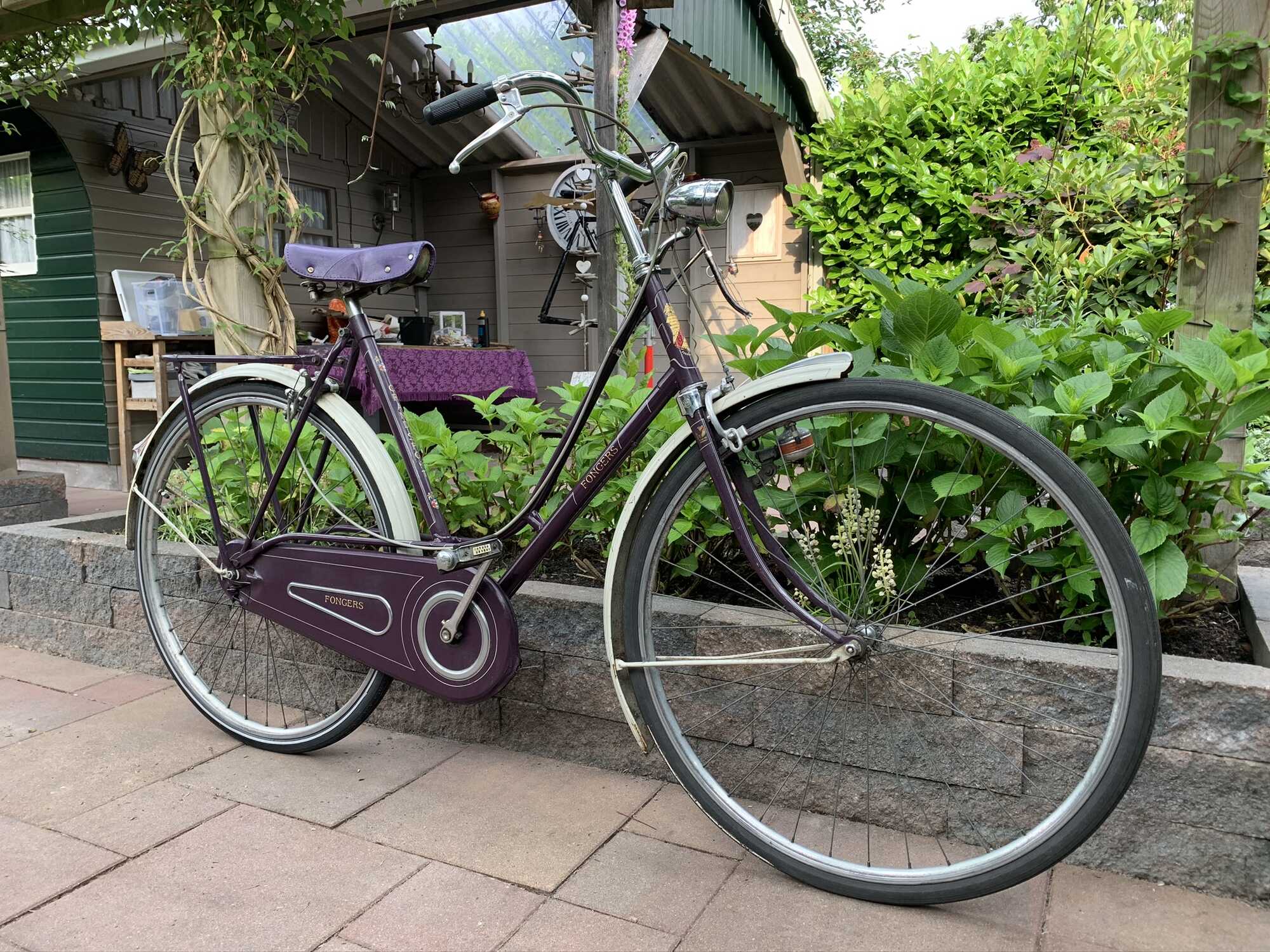 Deze paarse fiets was een etalage-model en na een poosje mocht zij het kopen en in termijnen betalen. Zij is altijd erg trots geweest op deze fiets en heeft er weinig op gereden, bang dat er iets mee zou gebeuren.