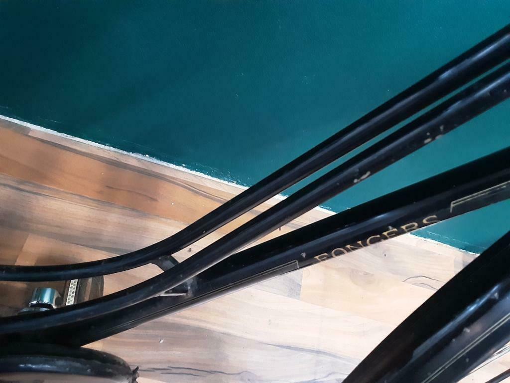Over de fiets zelf heb ik nog niet heel veel te vertellen behalve dat de basis goed is en er waarschijnlijk met wat kleine 'upgrades' een prachtig rijwiel van te maken is. Bijgevoegd wat foto's waarbij een groot deel van de 'storende factoren' reeds is verwijderd. De originele pedalen heb ik ook, echter omdat een aantal fietsen bij mij in een droge maar kleine berging staat heb ik ze er afgehaald.