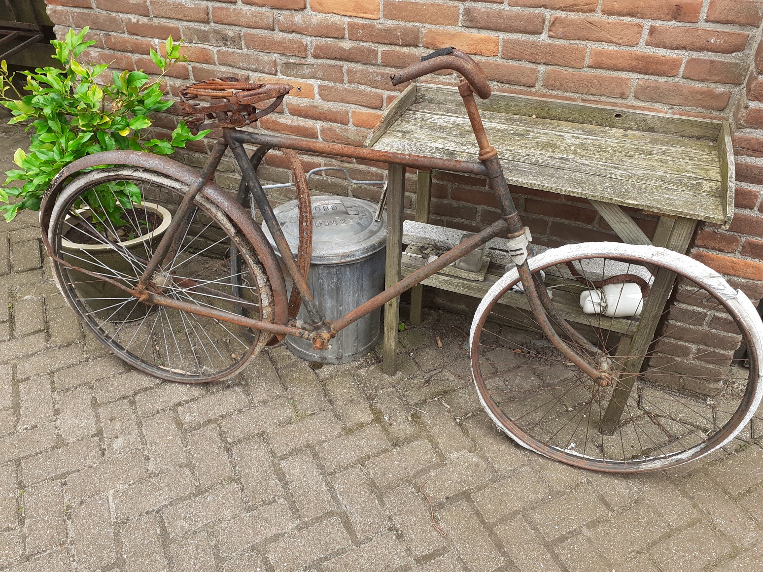Lijkt de bouw van het frame een beetje op dat van je herenfiets (vermoedelijk WKC) uit de Juncker fabriek? Zelfde lugs, mannetjes en bochten en denk je dat voor- en achterwiel echt bij elkaar horen?