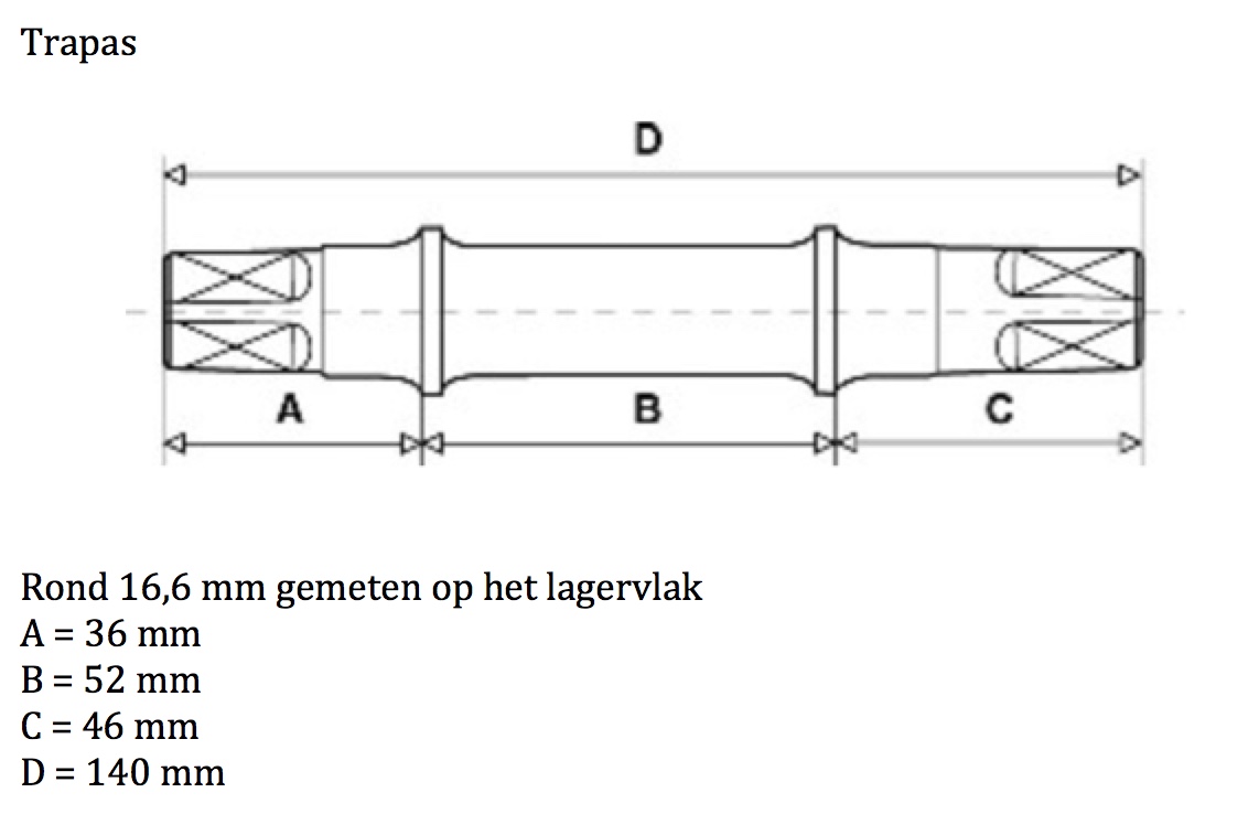 Rond 16 mm lang 140 mm Gazelle. Zie mijn advertentie van vandaag.
