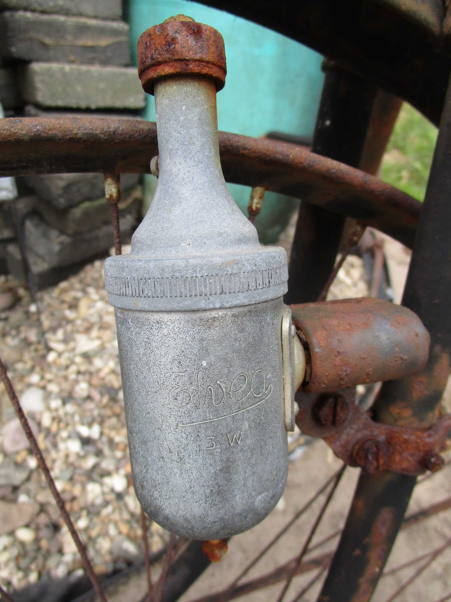 Bij deze nog een ELVEA dynamo. Grappig is, dat er niets rest van de band waar die tegenaan te draaide ...