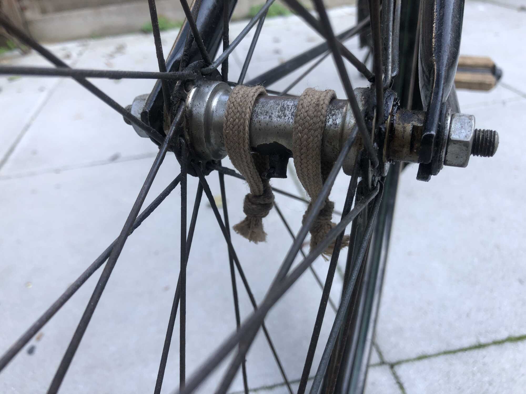 Een lus touw (of 2) of een leren riempje houdt de naaf schoon.