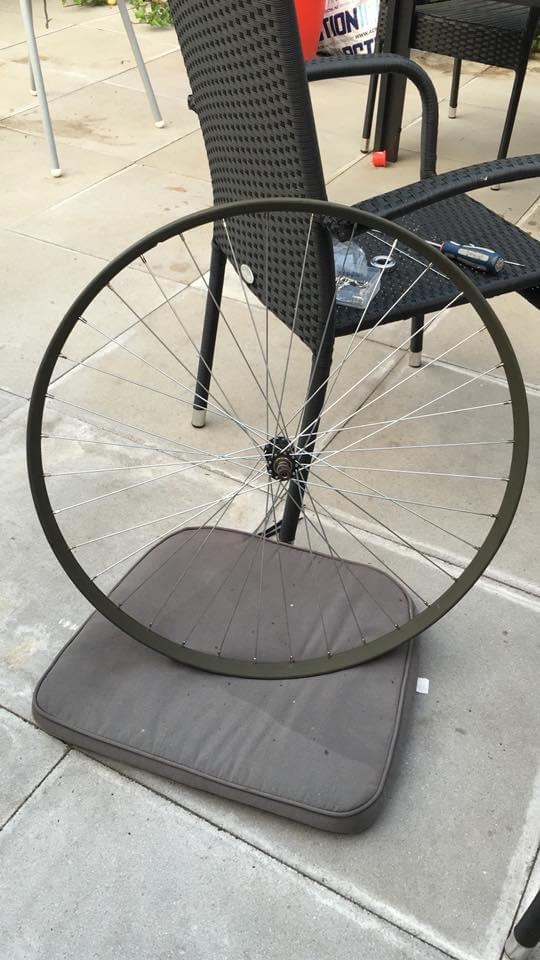 Het is goed om eerst een foto te maken van uw bestaand wiel dat u opnieuw wilt spaken, zodat u kunt zien hoe het in elkaar stak, nadat u het hebt gesloopt - laat ten minste één spaak heel, zodat u precies kunt nagaan welke spaak er in zat, qua lengte. Als de schroefdraad van de oude nippels op de oude spaken protesteert, kunnen de spaken worden doorgeknipt met een forse tang.
