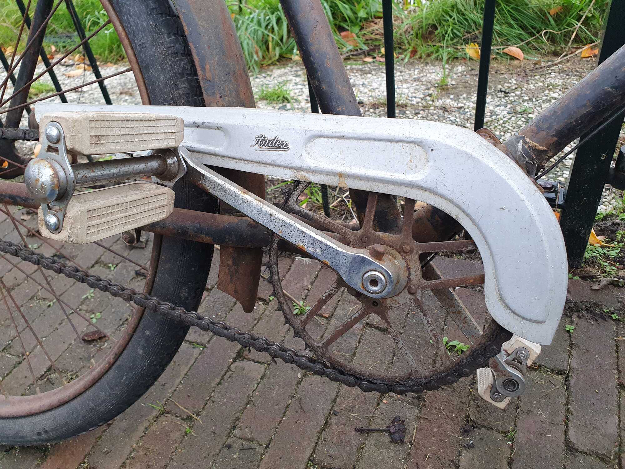 Ik ben erg benieuwd wat het merk is van deze fiets en uit welk jaar hij komt. De crank/ketting is aan vervanging toe, een zadelveer is afgebroken en opnieuw gelast (zit ietwat scheef) en de bagagedrager zit los. Ben benieuwd of iemand meer weet?!