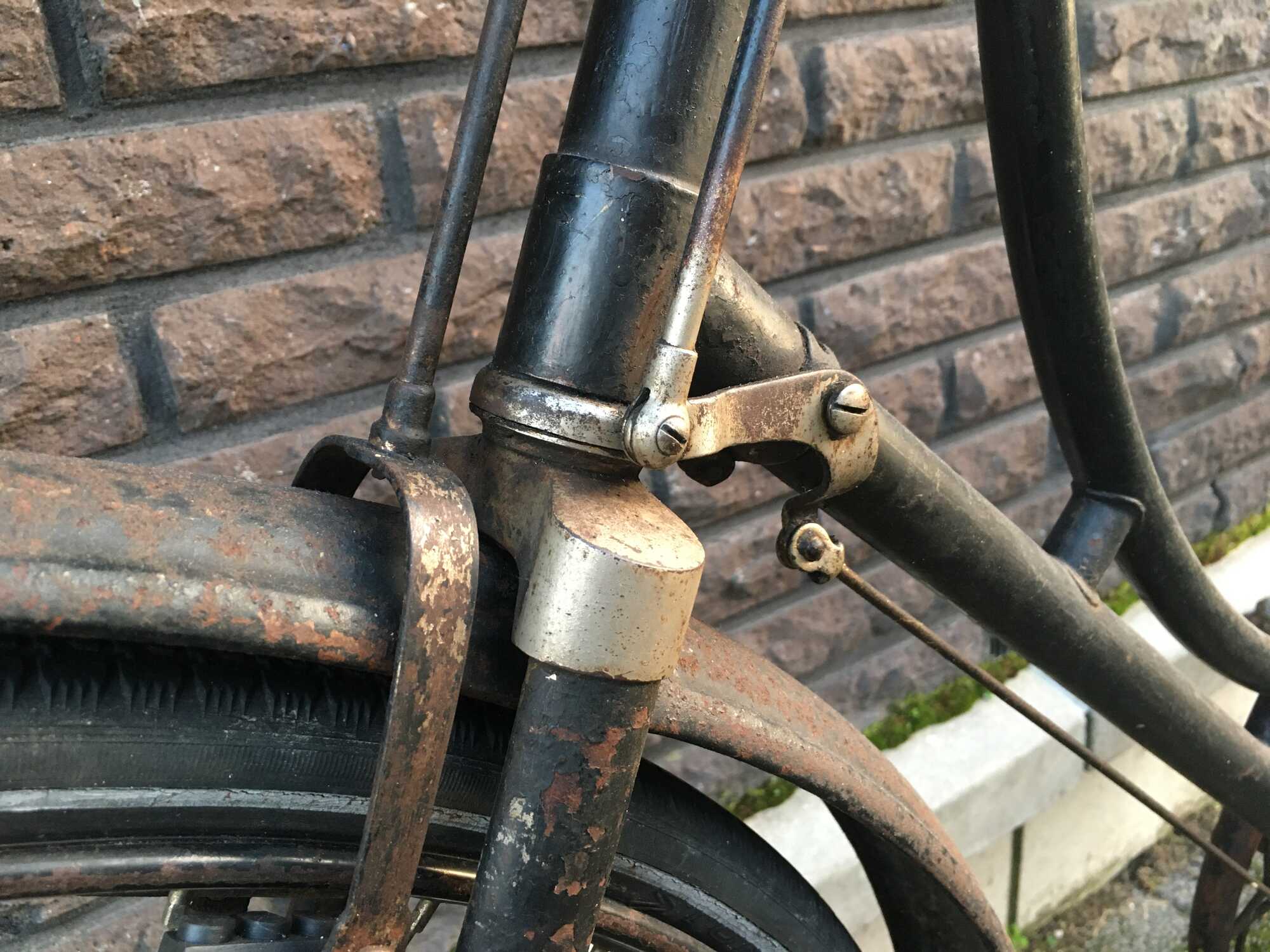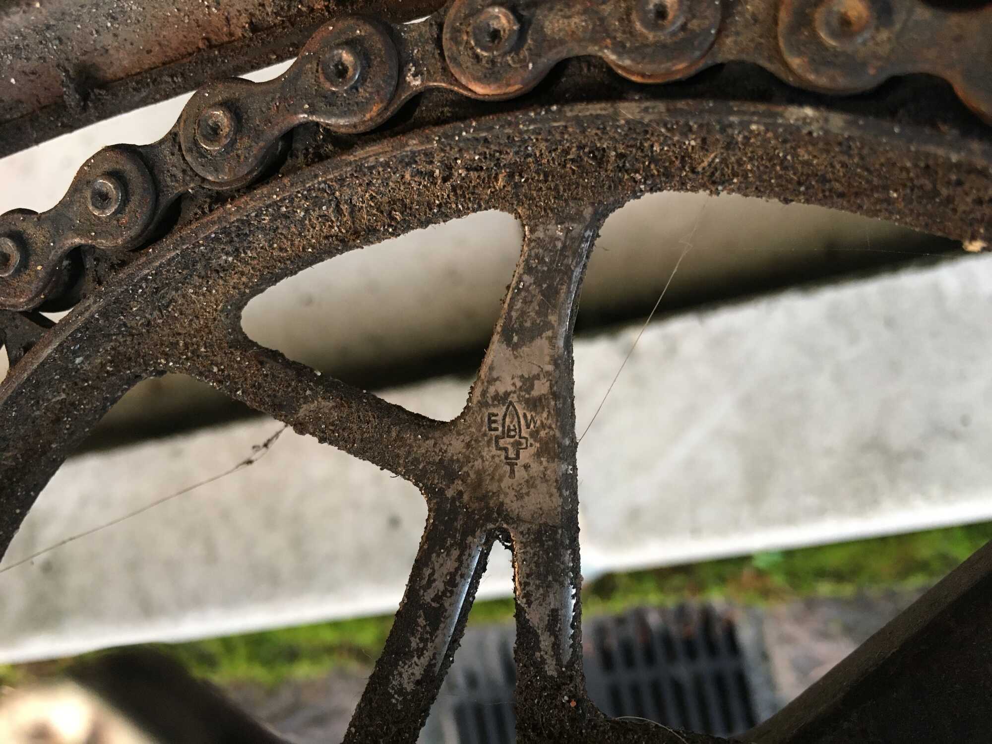 Vorig jaar besloot ik na velen projecten voorrang te hebben gegeven, het frame op twee wielen te zetten en rijdbaar te maken. Ook vond ik op het Williams kettingwiel het logo waar ik naar zocht, het ogenschijnlijk originele crank-stel bleek uit 1933.