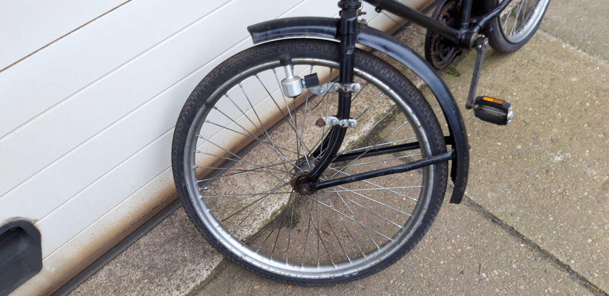 De dikke zwarte voornaven zijn typisch voor Gazelle transportfietsen.